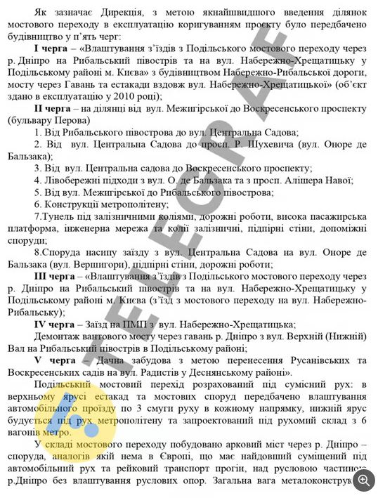 Департамент також надав інформацію про черговість робіт на Подільському мостовому переході, хоча строки виконання окремих етапів поки не визначено. Загалом будівництво мосту поділено на п’ять черг.