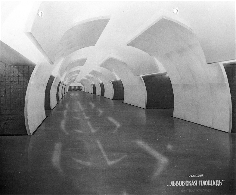 Строительные работы в направлении "Львовской брамы" начались на рубеже 80-90-х годов прошлого века. К середине 90-х подземная часть станции была построена практически полностью, путевые стены даже успели облицевать мрамором. А вот строительство эскалаторных тоннелей и вестибюля задерживалось из-за отсутствия единого мнения, куда выводить выход со станции. Дело в том, что Львовскую площадь уже не первое десятилетие собирались реконструировать и, прежде чем начинать строительство выхода из метро, нужно было решить, как будет выглядеть сама площадь. В конце концов в начале 1996 г., с целью ускорения пуска участка от "Золотых ворот" до "Лукьяновской" и экономии и без того недостающих средств, городскими властями было принято решение отказаться от строительства выхода со "Львовской брамы" до решения вопроса реконструкции площади. Таким образом, одновременно с открытием в конце 1996 г. "Лукьяновской" работы на "Львовской браме" фактически остановились, а станция обрела статус "станции-призрака".