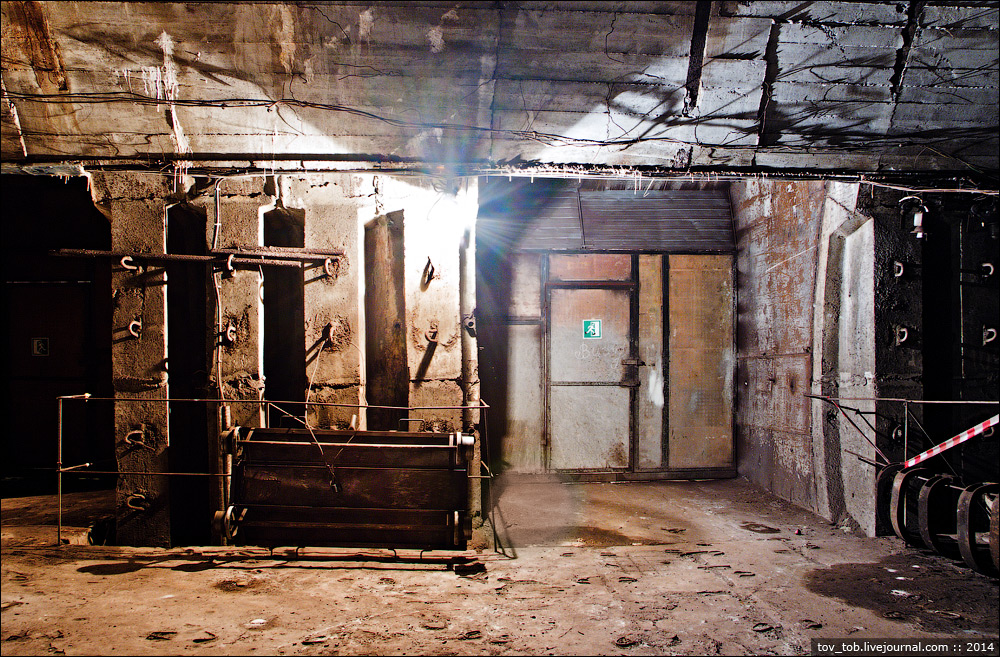 18. Пройдем чуть дальше. Прямо перед нами действующая водоотливная установка, а за ней будет располагаться натяжная камера эскалатора: