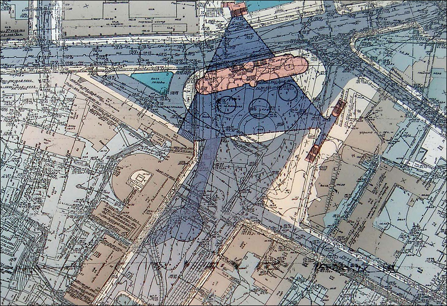 20. Из-за большой глубины заложения на "Львовской браме" предполагается строительство двух эскалаторных тоннелей с промежуточным вестибюлем. Еще на момент проектирования станции было определено, что выход с нее будет размещаться непосредственно на Львовской площади. К этому базовому и логичному варианту, проектировщики позже предложили еще с десяток, как с выходом на площадь, так и без, чтобы обойти проблему реконструкции площади. Но воз, как мы знаем, и ныне там. На картинке вы видите только один из вариантов: согласно нему предлагалось построить выход в дворик по ул. Бульварно-Кудрявская (бывш. Воровского) и заложить возможность достройки выхода на площадь.