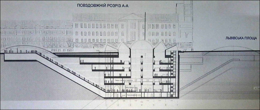 22. Для реконструкции площади и строительства выхода из метро киевские власти пытались привлекать инвесторов. Само собой в таком варианте предусматривалось строительство очередного торгового центра с подземным паркингом. Промежуточный вестибюль станции предполагалось разместить на нижнем уровне торгового центра, а верхний эскалаторный наклон был бы фактически совмещен с ТЦ. Ровно 10 лет назад даже был выбран инвестор (компания "Зубр ЛТД"), однако впоследствии он не смог выполнить взятые на себя обязательства, вследствие чего договор был расторгнут. В 2007 г. ООО "Зубр ЛТД" повторно было выбрано инвестором по многострадальному объекту, а затем заменено на ООО "Коника".