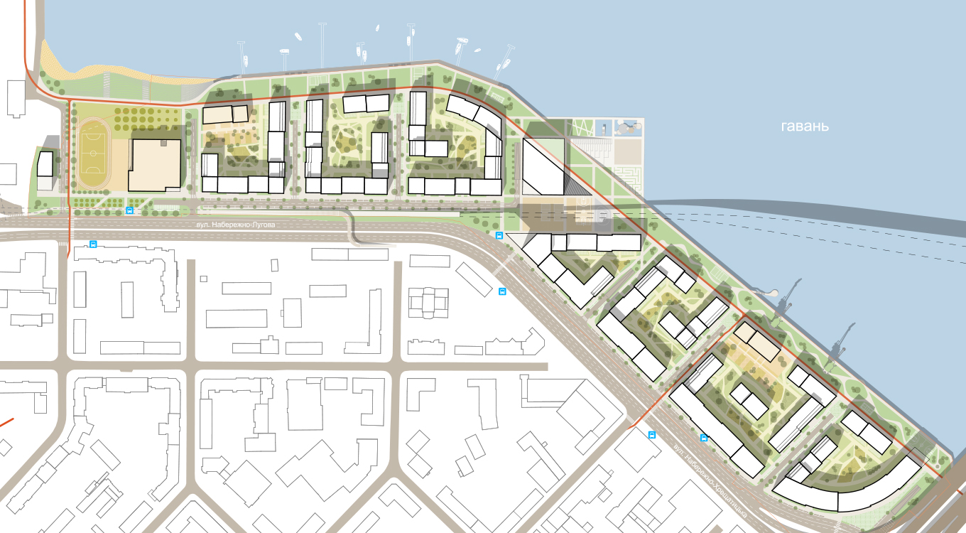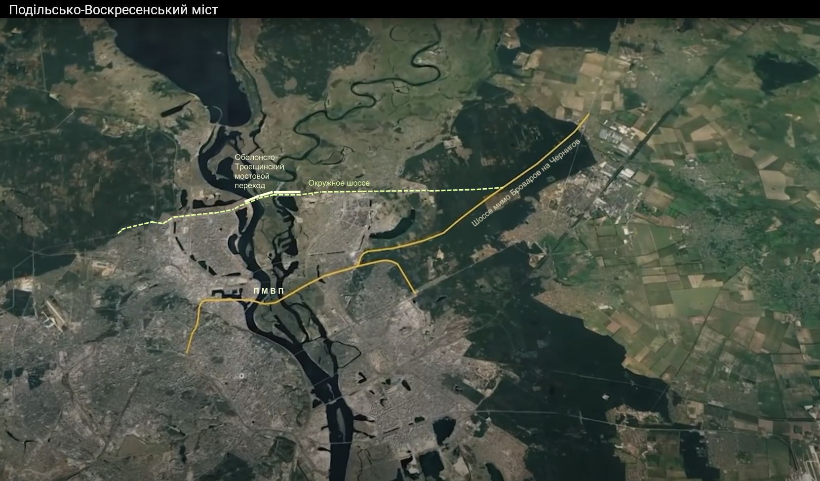 Загальний пдан де видно як пройде міст ПВМП через Гавань та естакада.