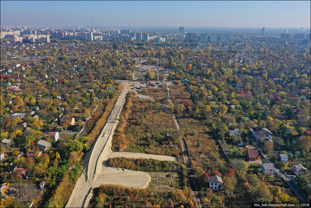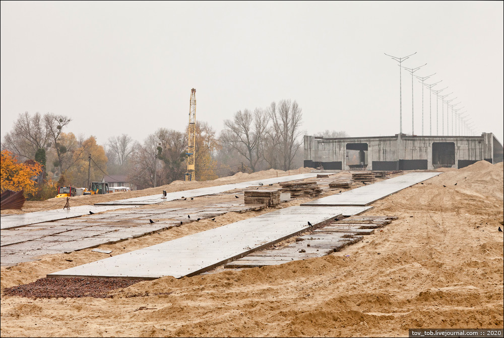 95. Взгляд на противоположную сторону. Куска насыпи с подбетонкой под тоннели метро год назад не было в принципе и само ее появление достаточно ценно. Но стоит учесть, что бОльшую часть времени работа по отсыпке насыпи велась в четверть силы или вовсе стояла. Первый участок подбетонки появился еще в середине лета, последний существующий сегодня участок рождается на этом октябрьском фото. С тех пор здесь не изменилось вообще ничего. При этом за год было абсолютно реально сделать полностью хотя бы эту часть тоннелей, закончить полностью насыпь и обустроить сверху дорогу.