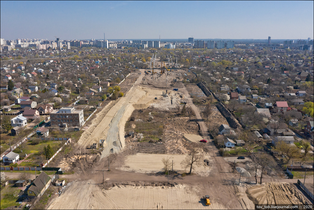 94. А это уже вторая половина октября прошлого года. По сравнению с фото №90 изменения, конечно, на лицо, но не революционны. Ниже я расскажу почему. Насыпь подросла лишь до основания тоннелей метро (в этом месте они идут внутри насыпи прежде чем нырнуть под землю), а соседние участки, которые также находятся в полосе землеотвода моста, так и остались на своем месте. Когда работы по насыпи продолжатся - это станет проблемным местом.