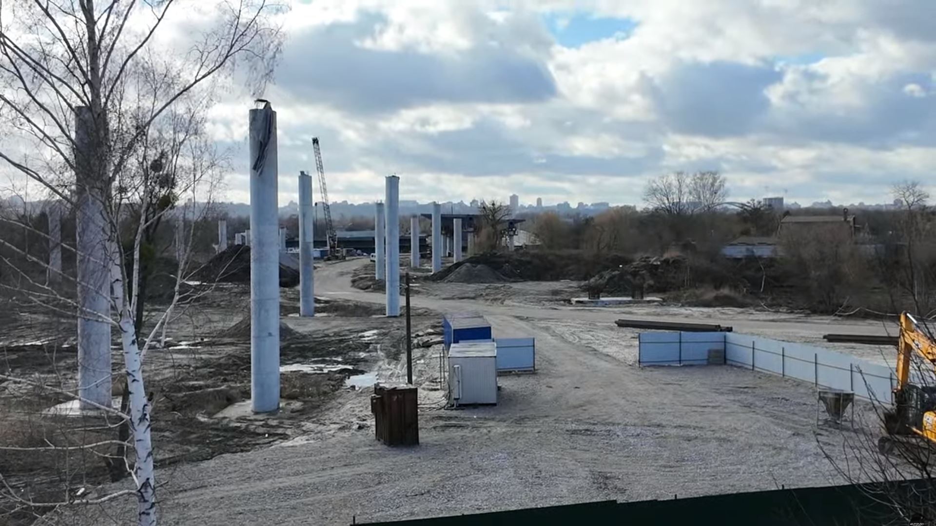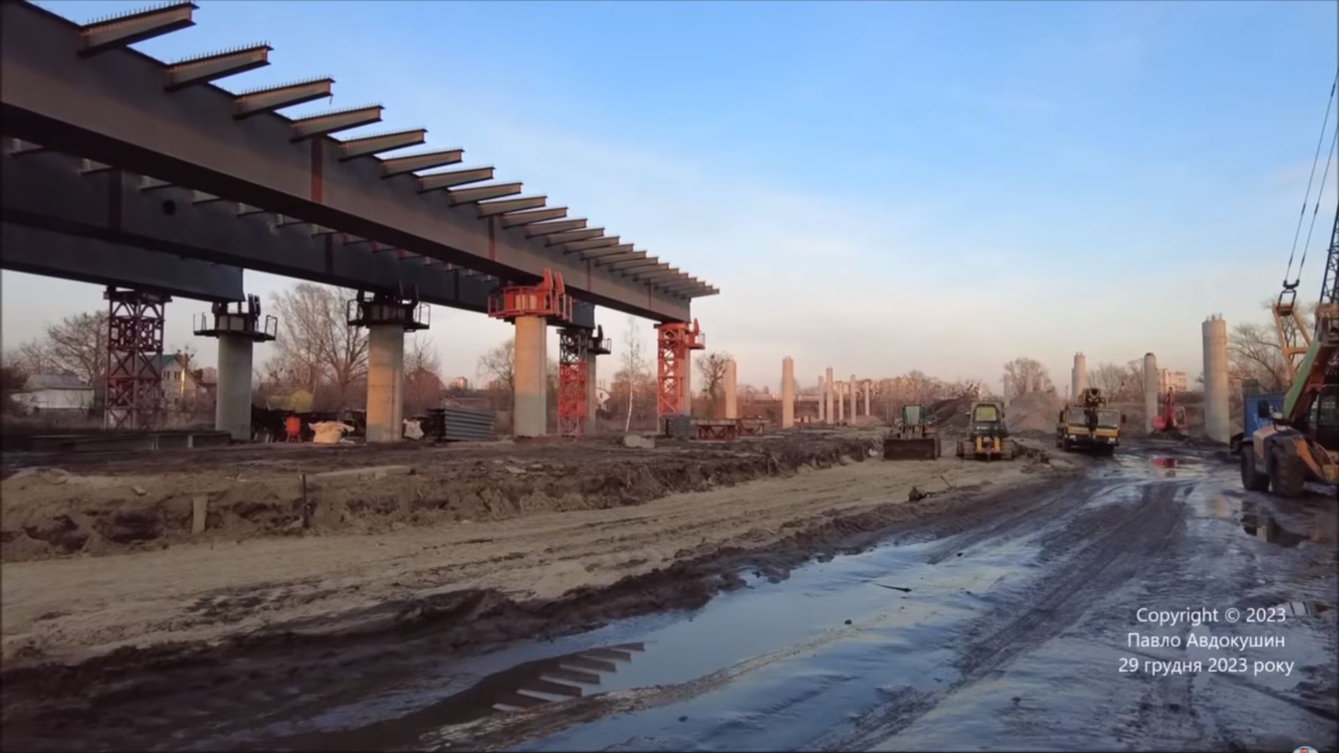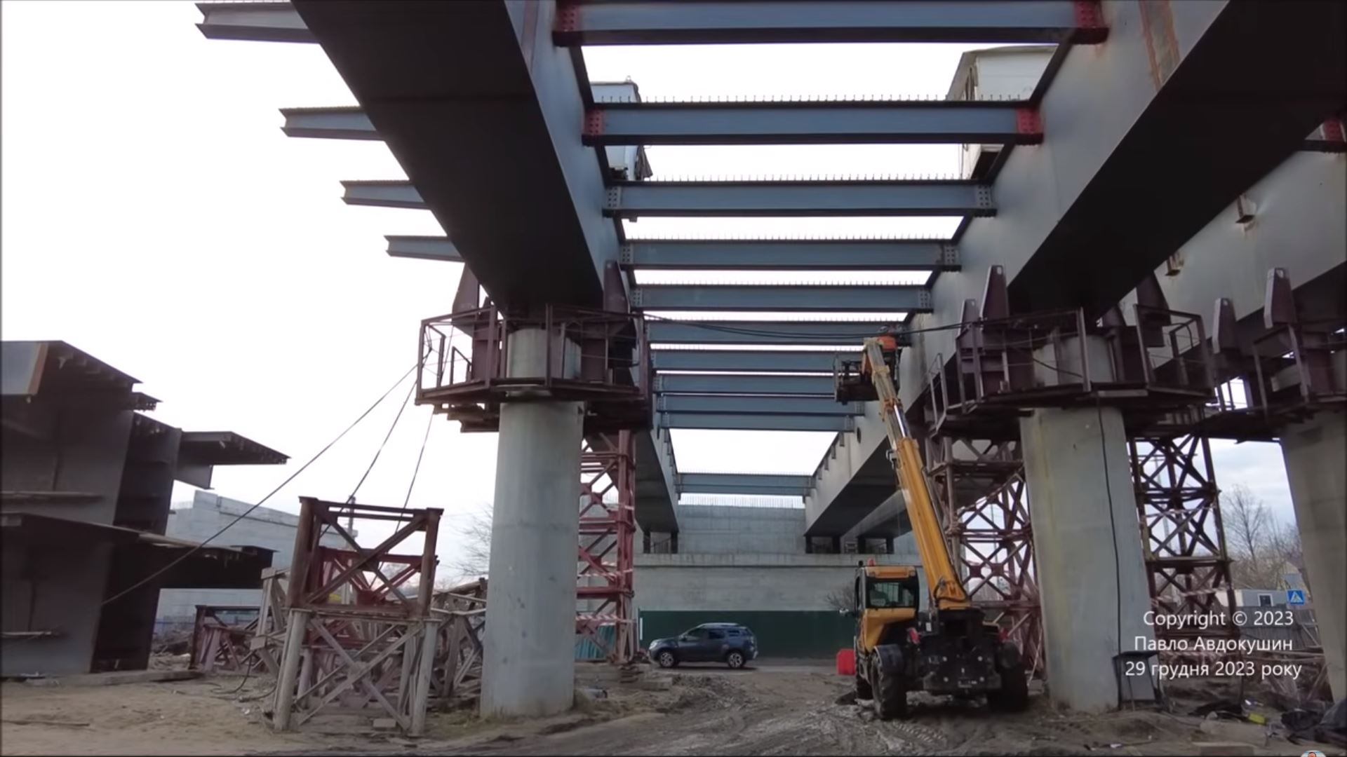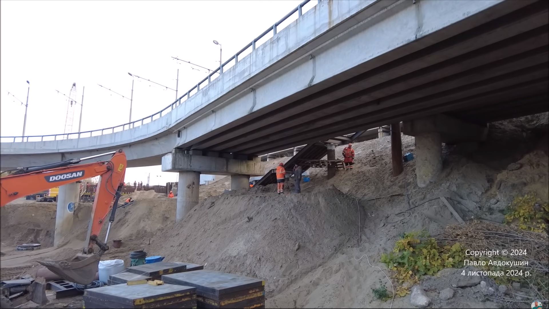 Подільський мостовий перехід. Активне будівництво з'їзду на Троєщину!
