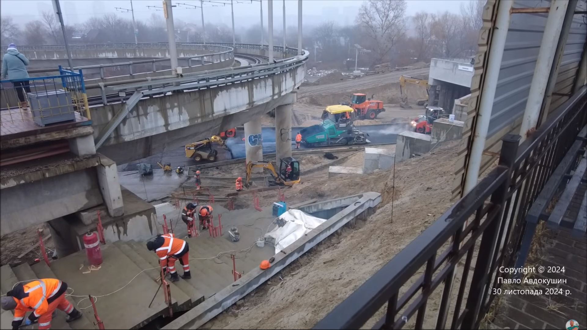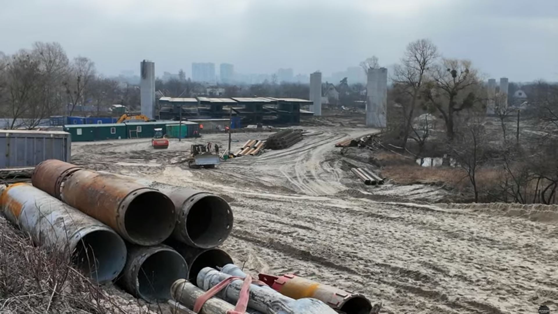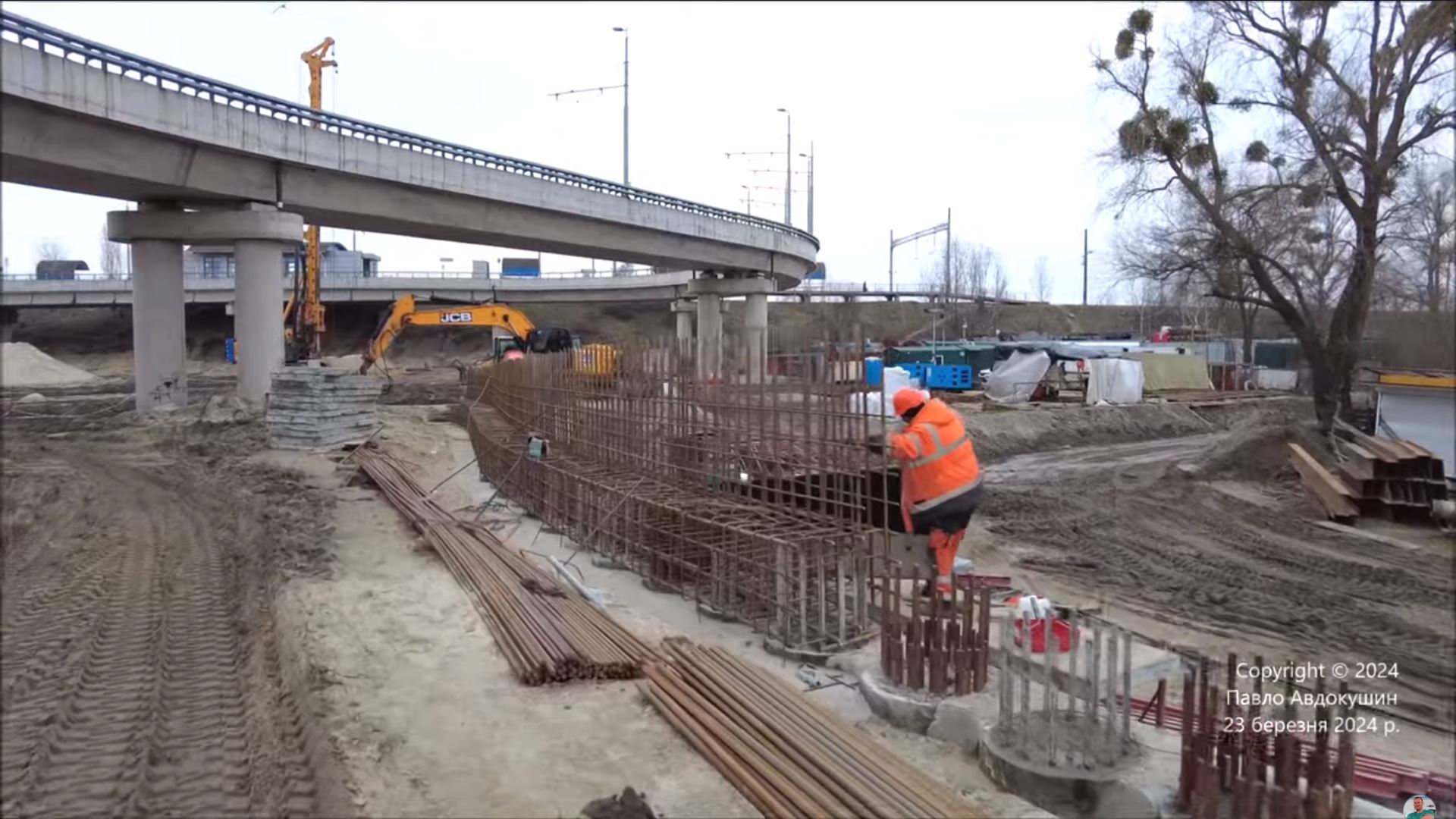 Подільський мостовий перехід. Активне будівництво з'їзду на Троєщину!