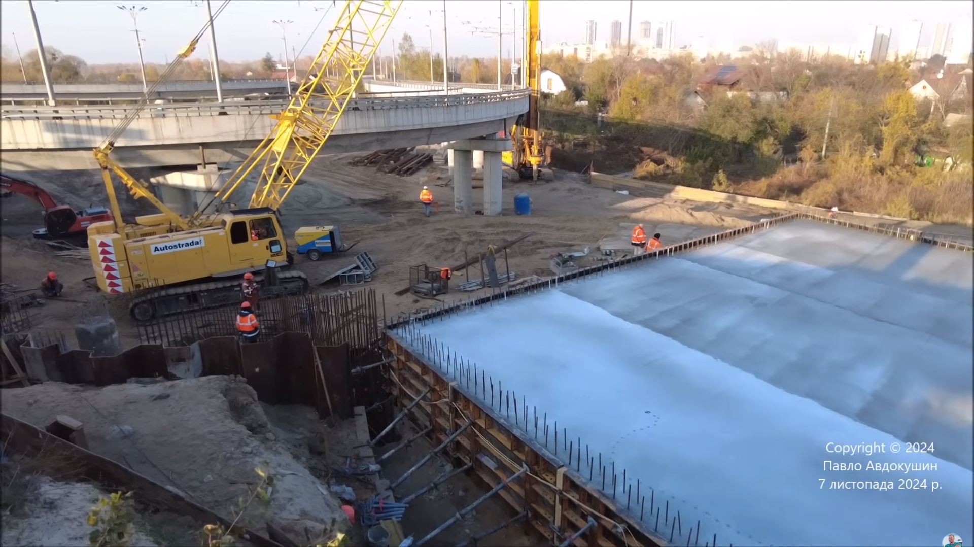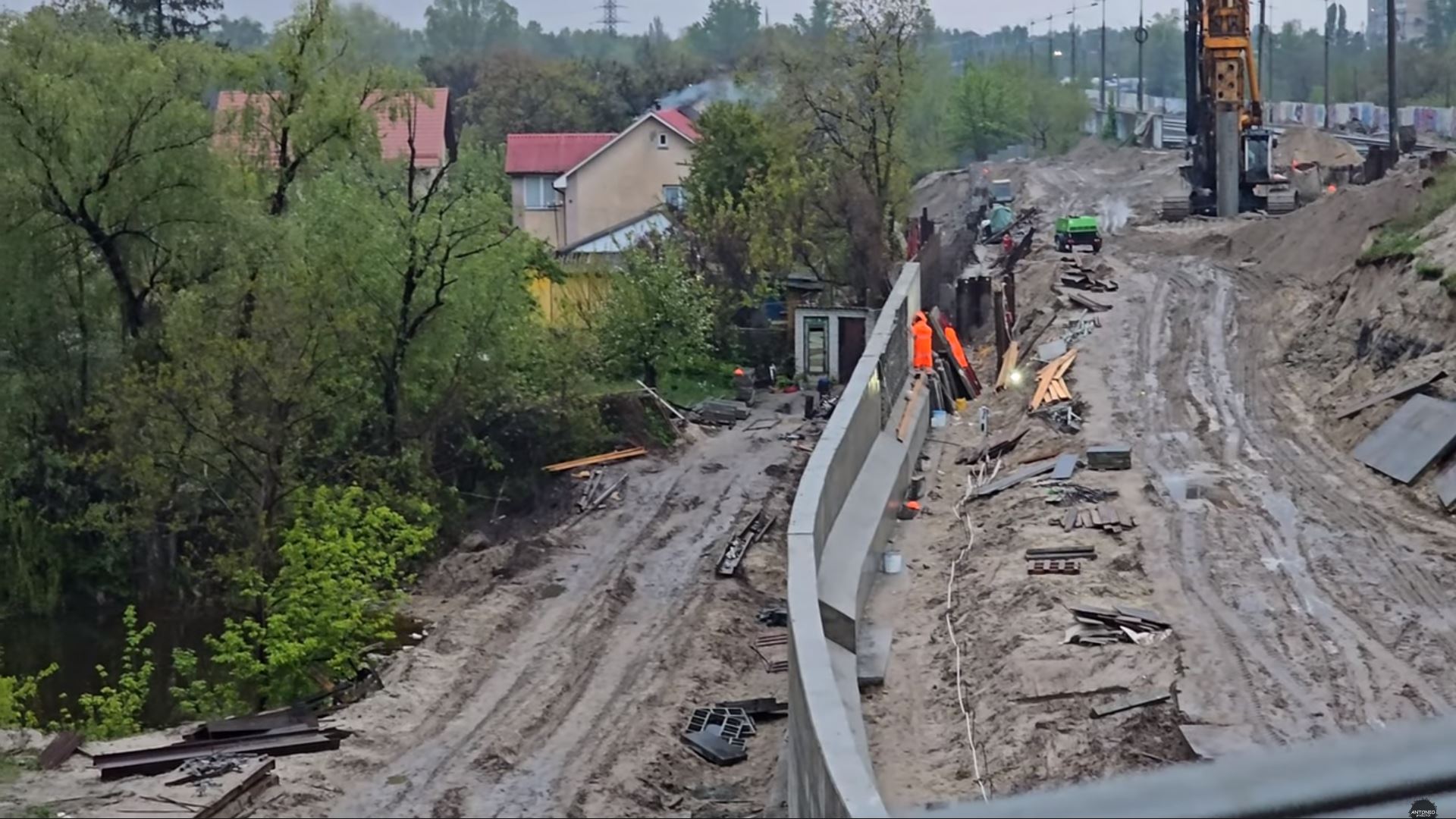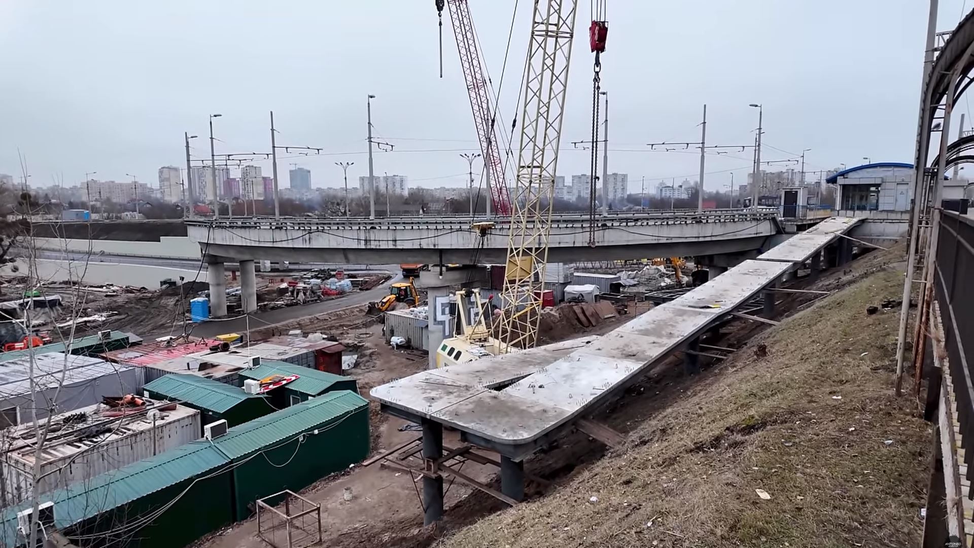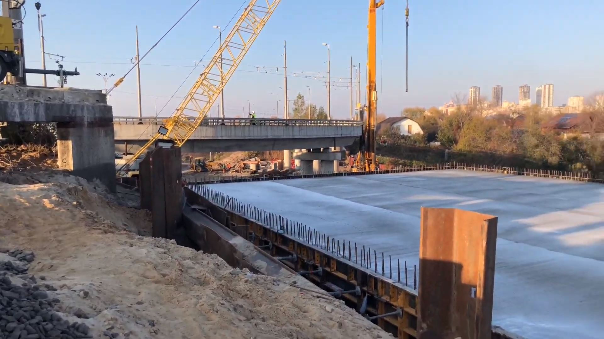 Подільський мостовий перехід. Активне будівництво з'їзду на Троєщину!