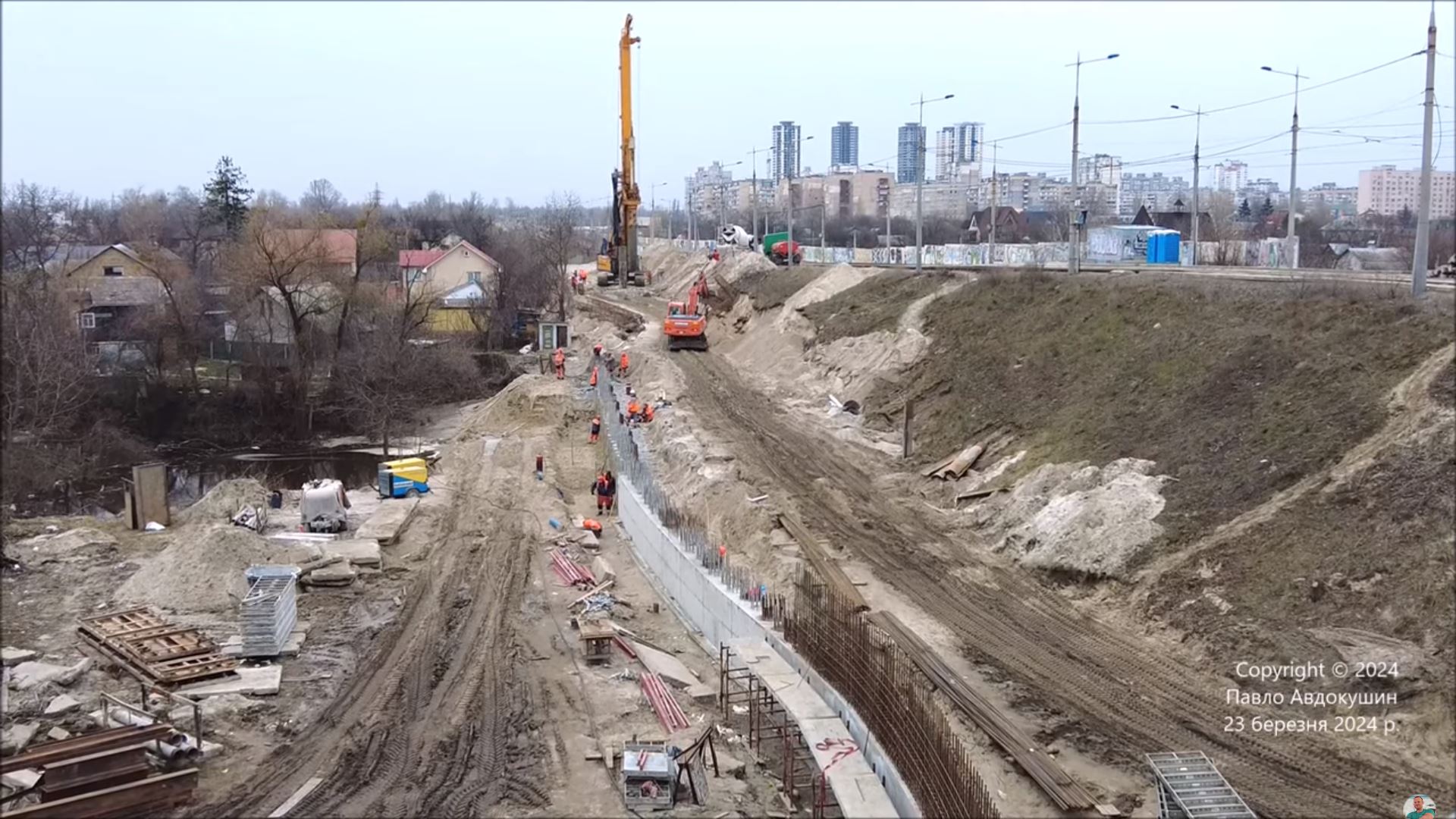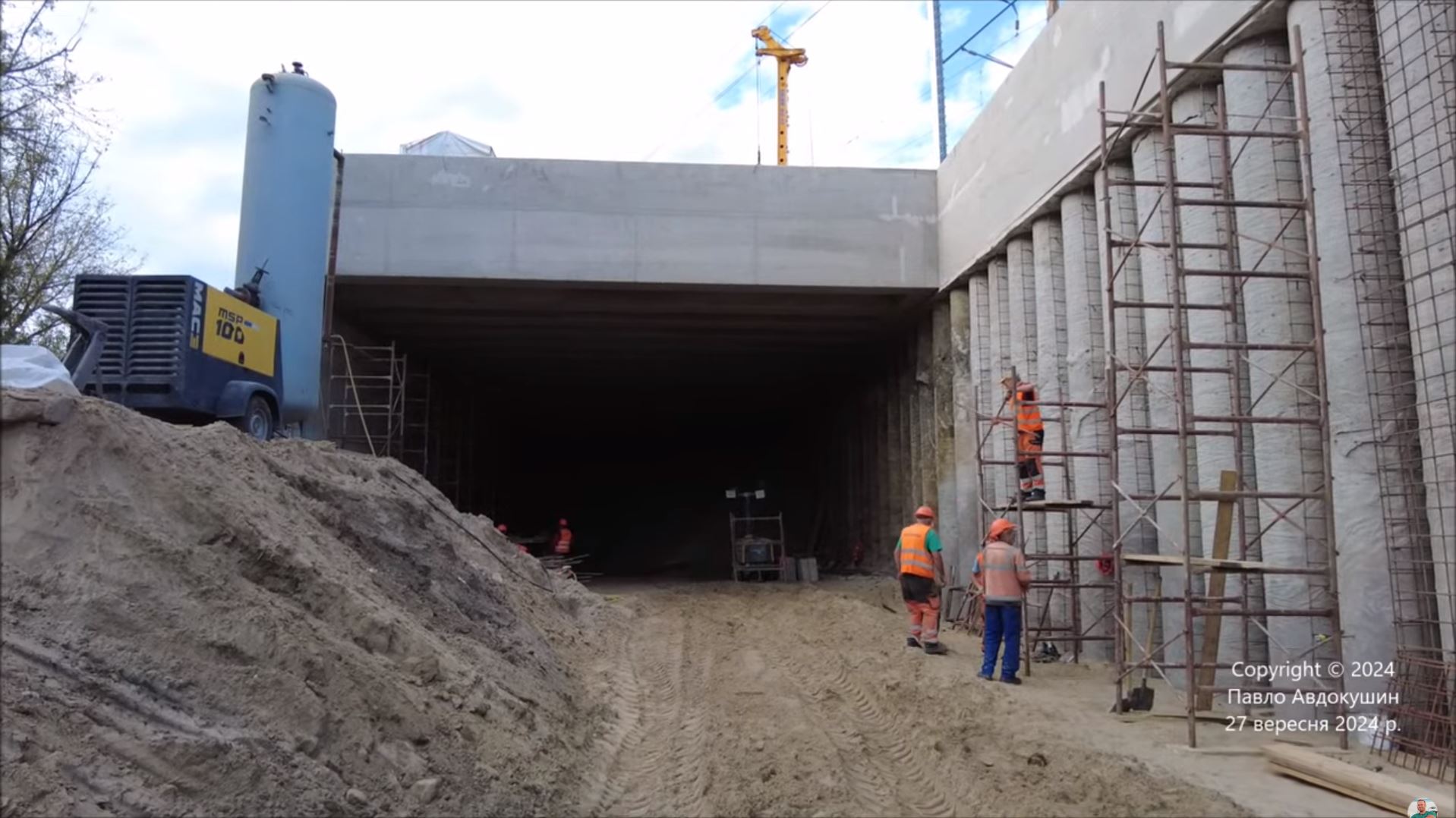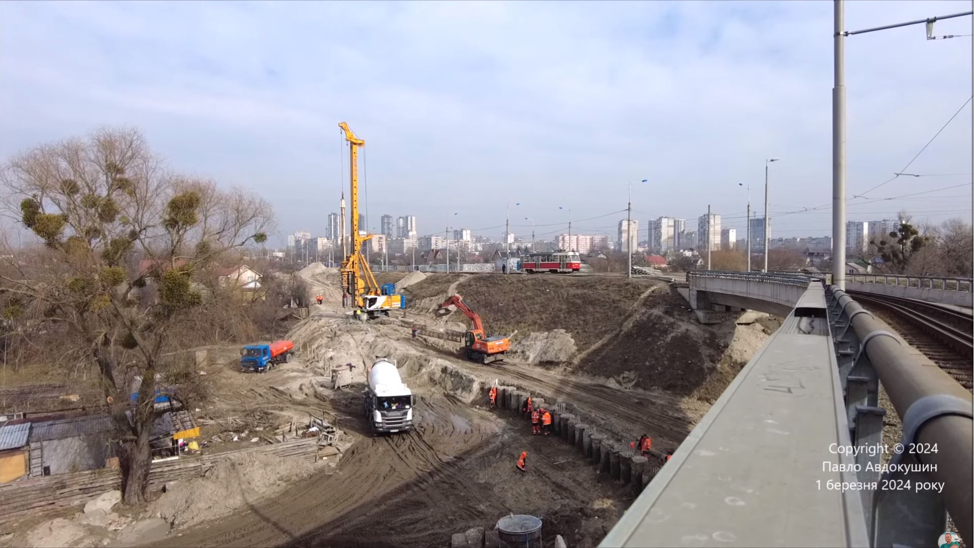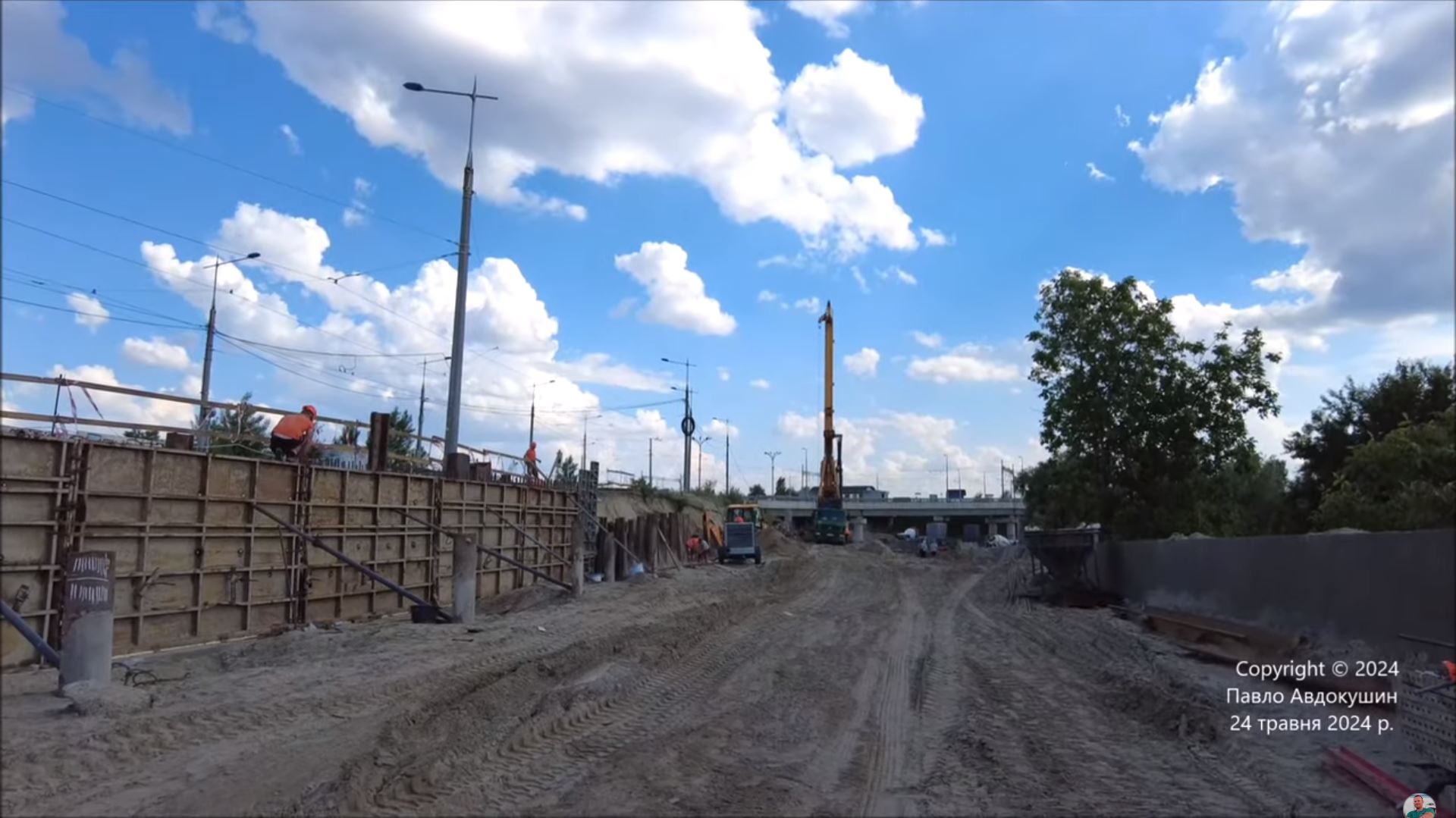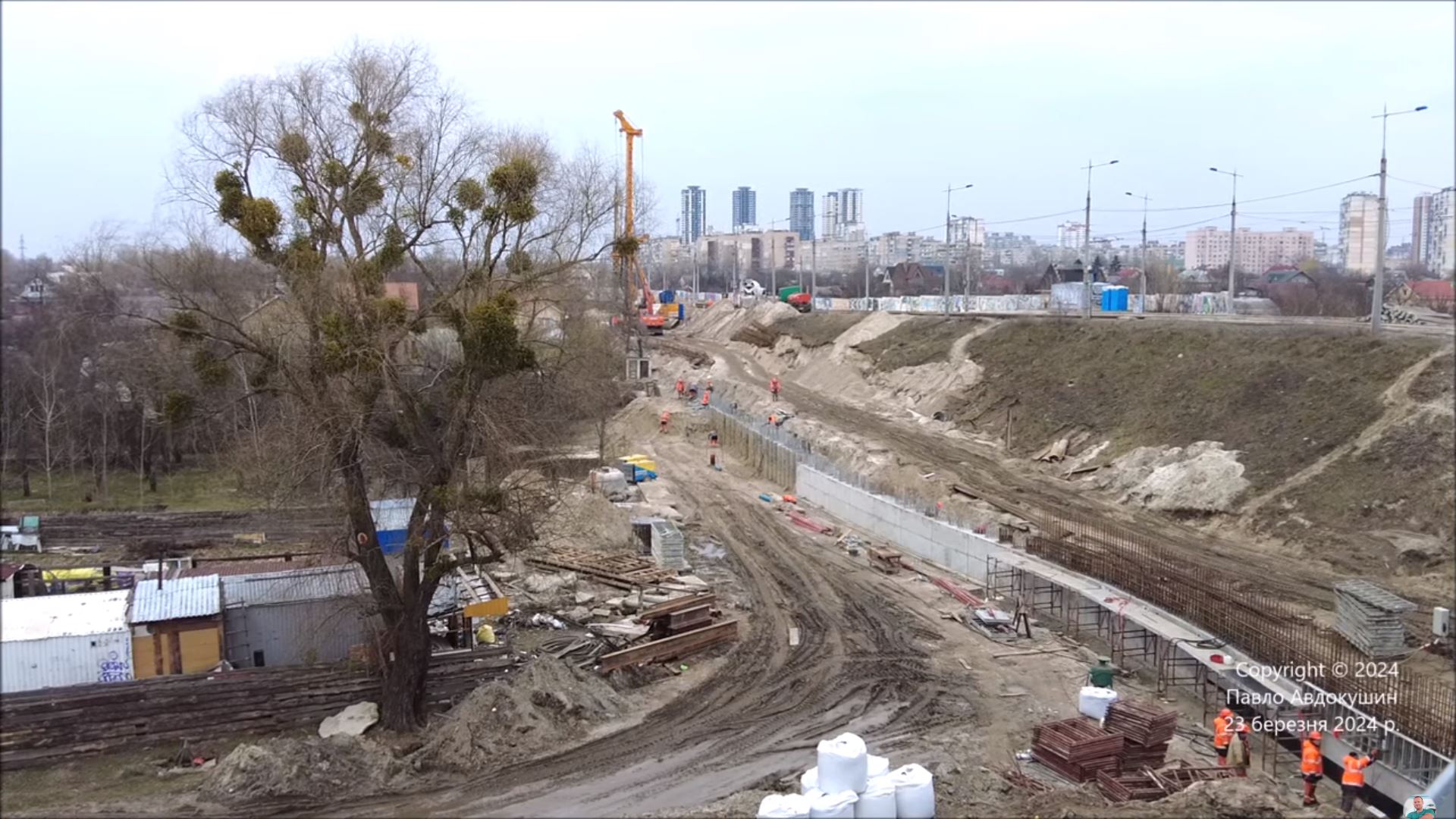 Зараз продовжують насипати насипи прямого проїзду: верховий та низовий. Паралельно розпочинають продовжувати тунелі метро на Троєщину. Причому робиться це діляночками. І першими йде верховий тунель, а його наздоганяє низовий. І отак будуть вони чередуватися.