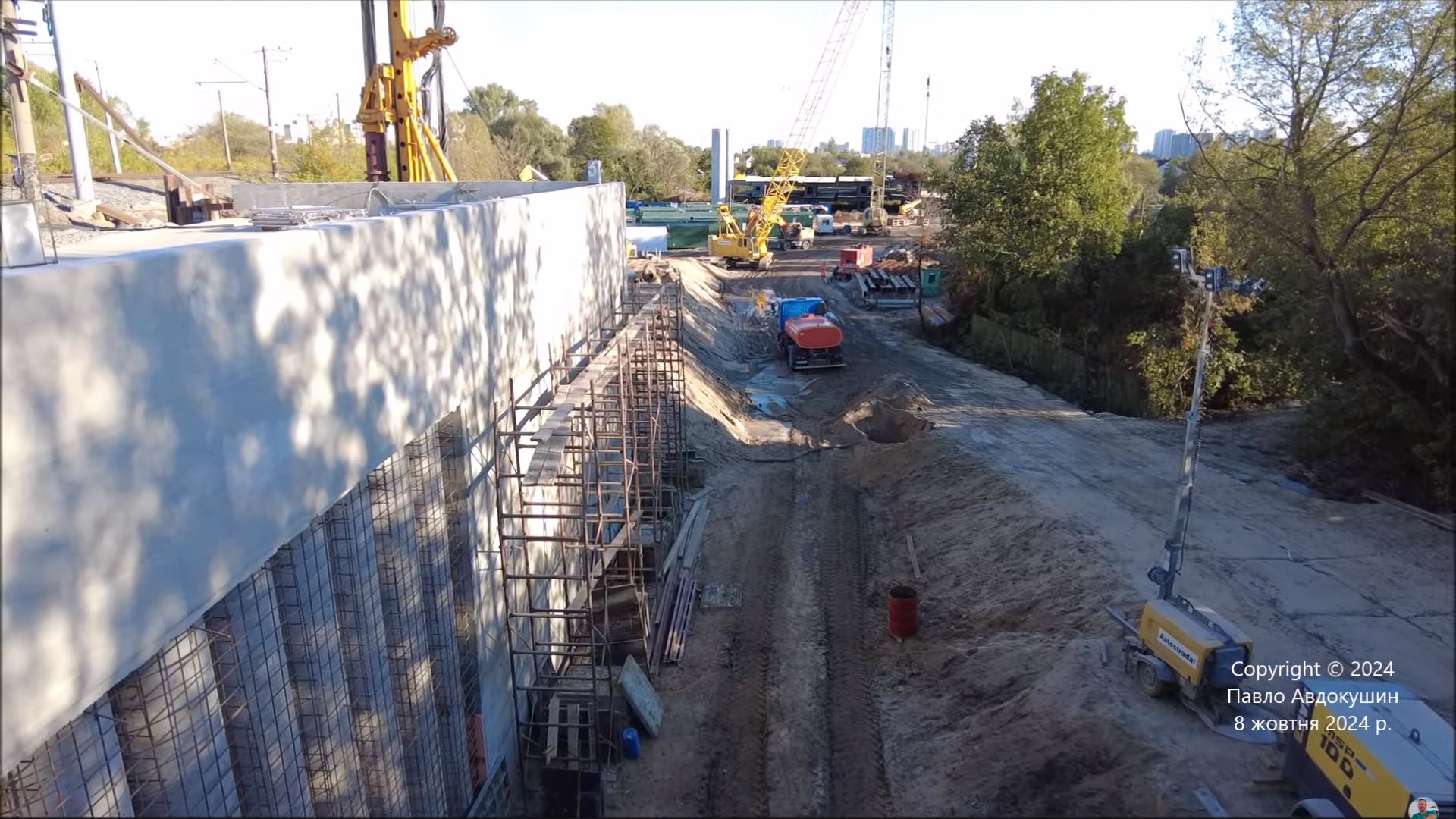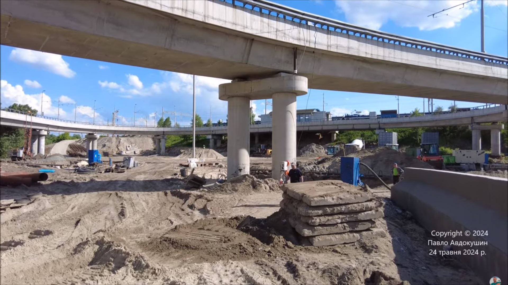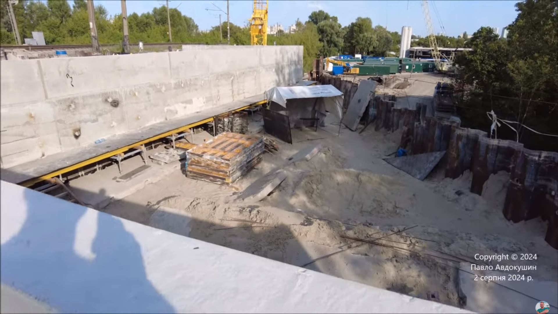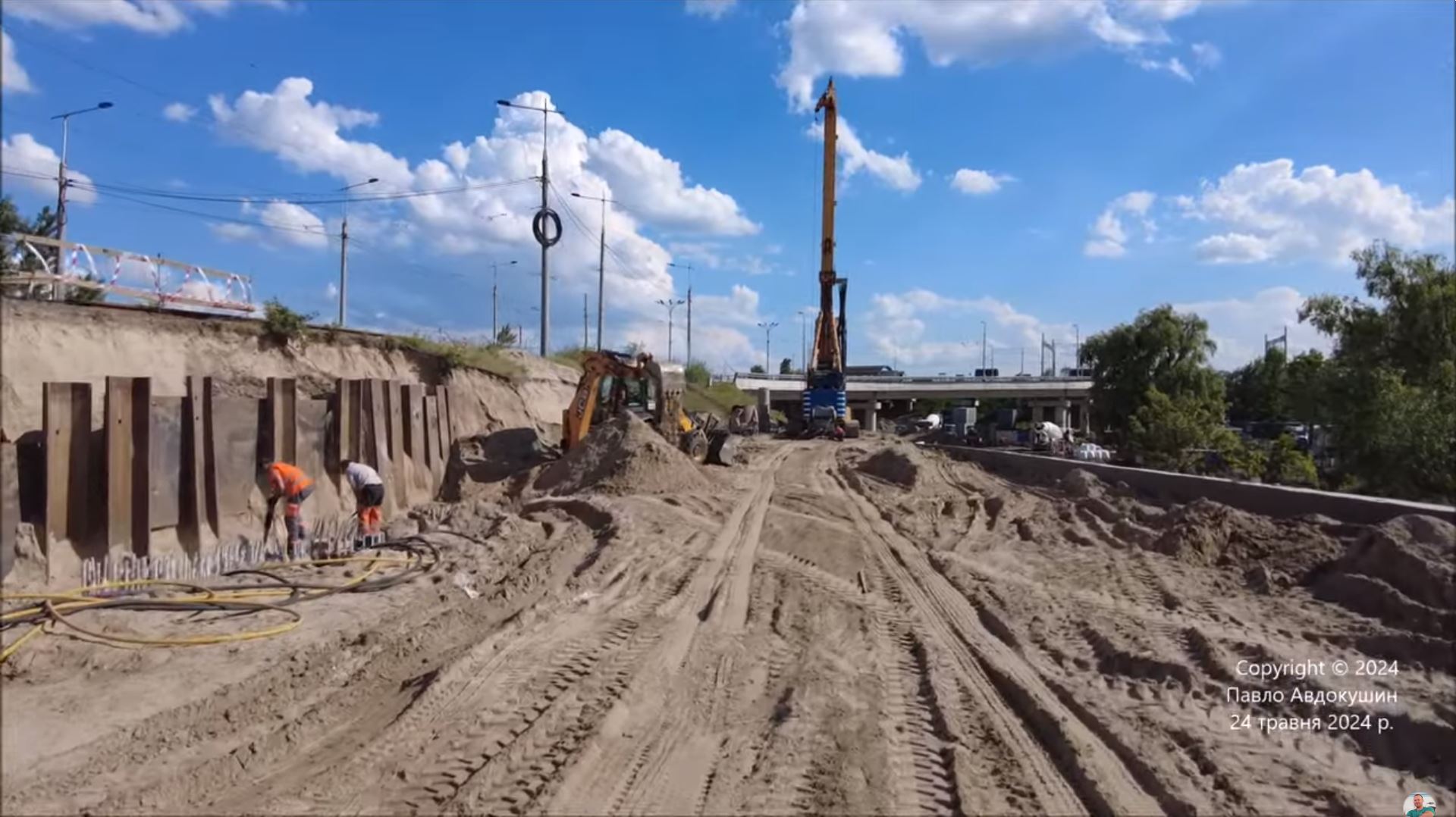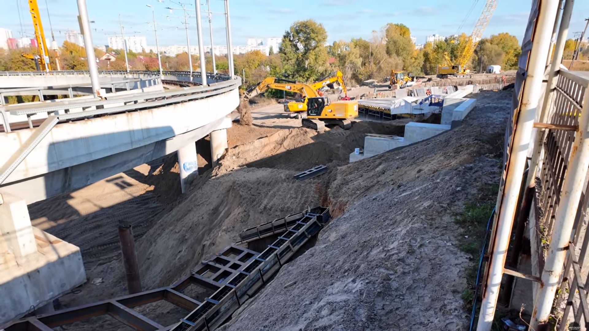 Зараз продовжують насипати насипи прямого проїзду: верховий та низовий. Паралельно розпочинають продовжувати тунелі метро на Троєщину. Причому робиться це діляночками. І першими йде верховий тунель, а його наздоганяє низовий. І отак будуть вони чередуватися.