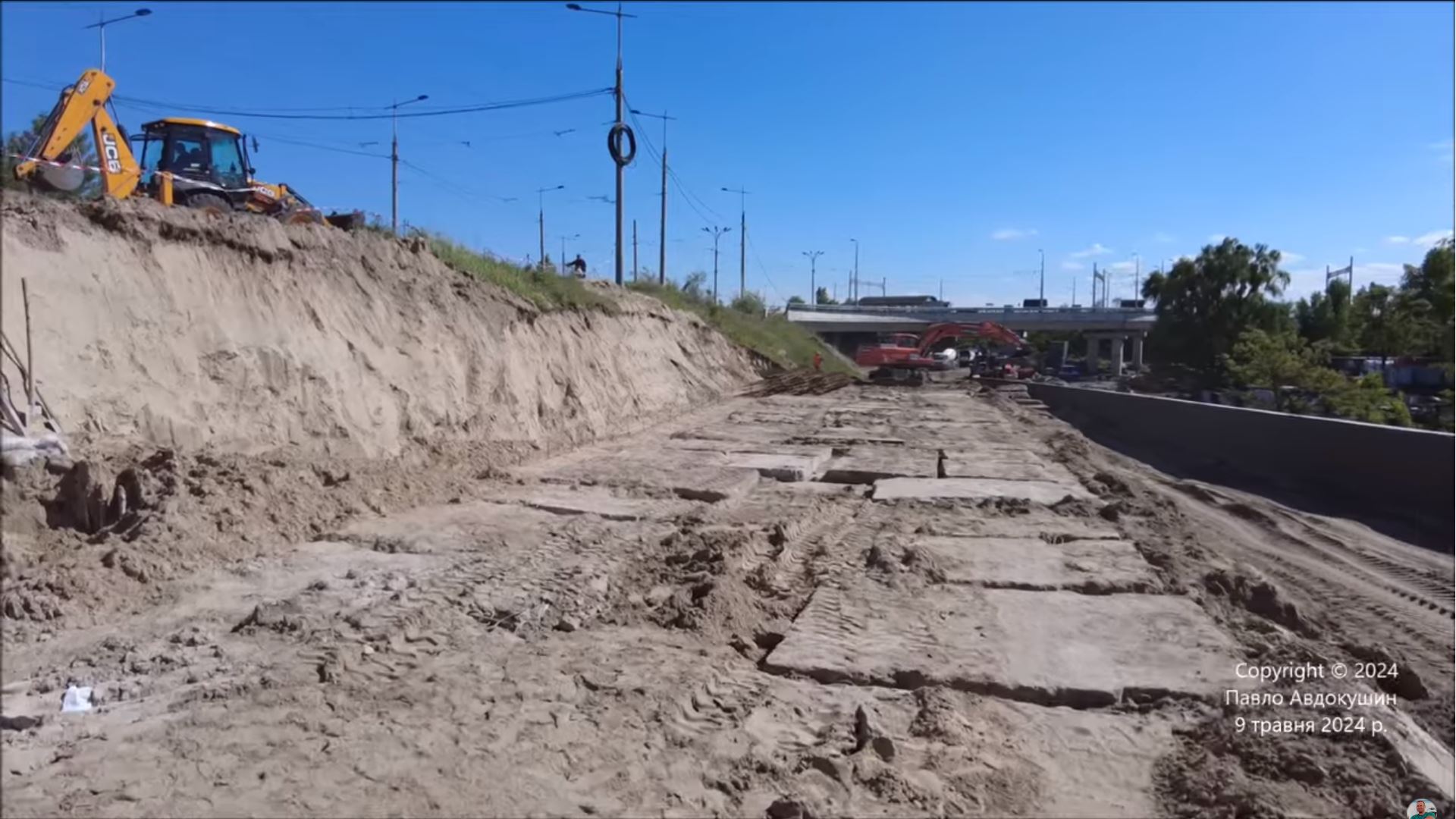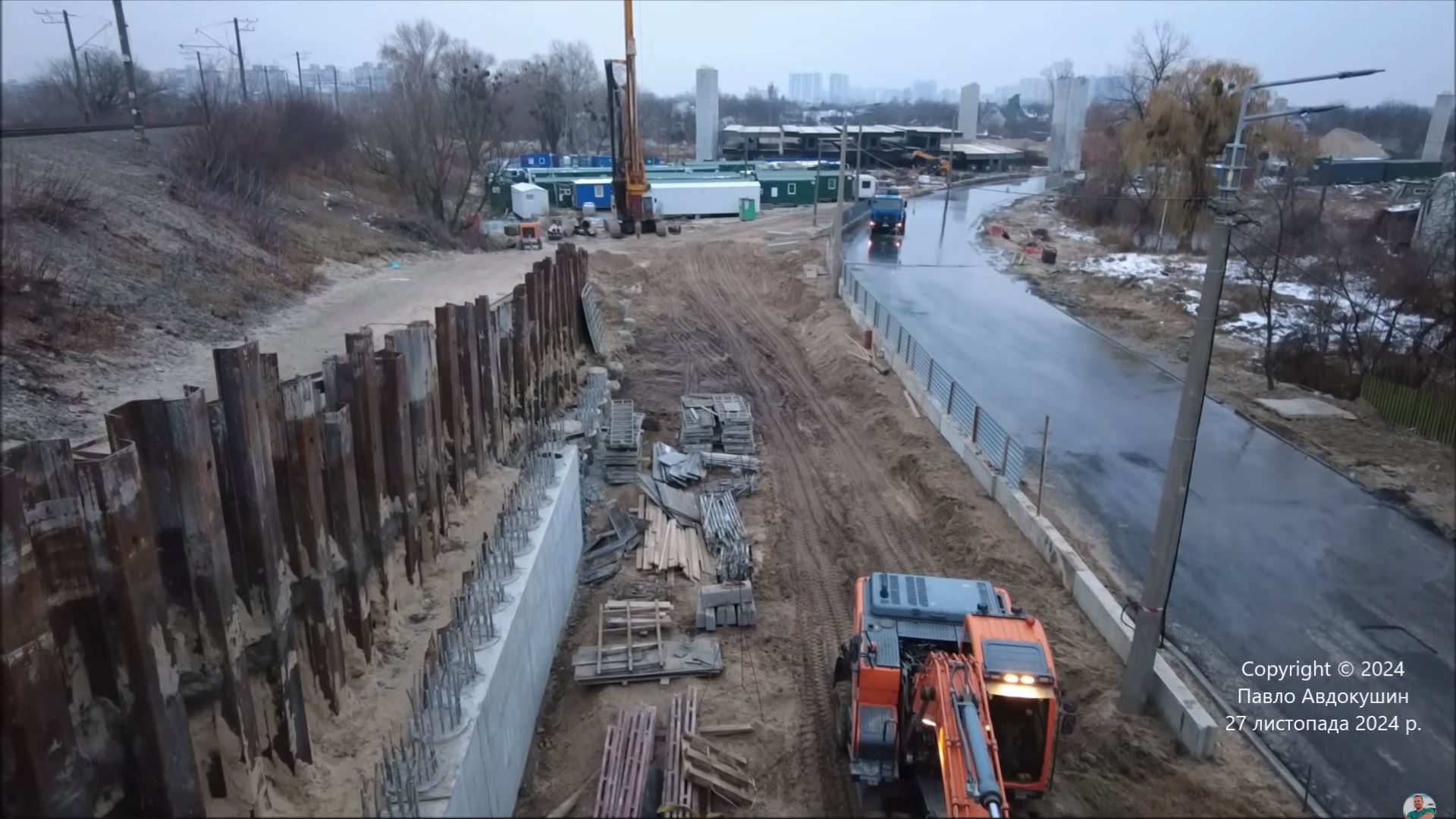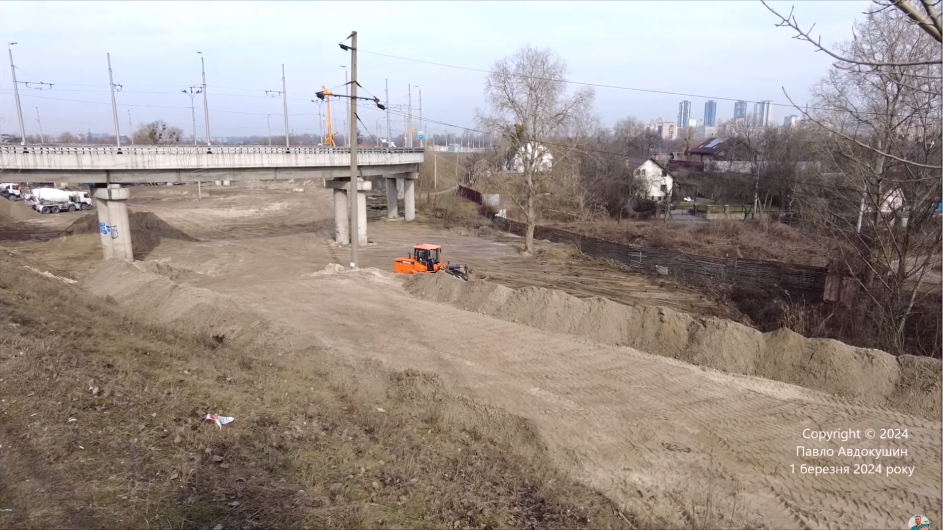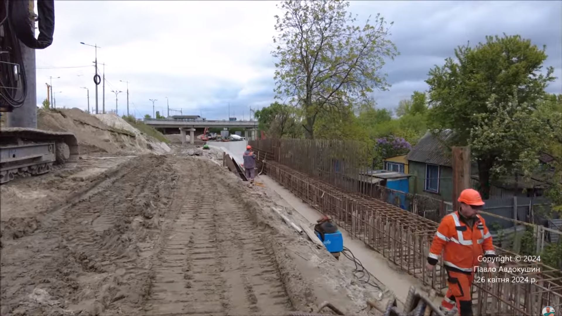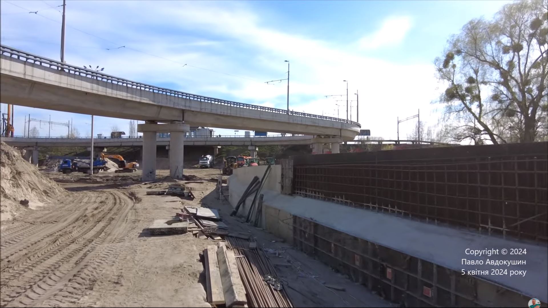 Зараз продовжують насипати насипи прямого проїзду: верховий та низовий. Паралельно розпочинають продовжувати тунелі метро на Троєщину. Причому робиться це діляночками. І першими йде верховий тунель, а його наздоганяє низовий. І отак будуть вони чередуватися.