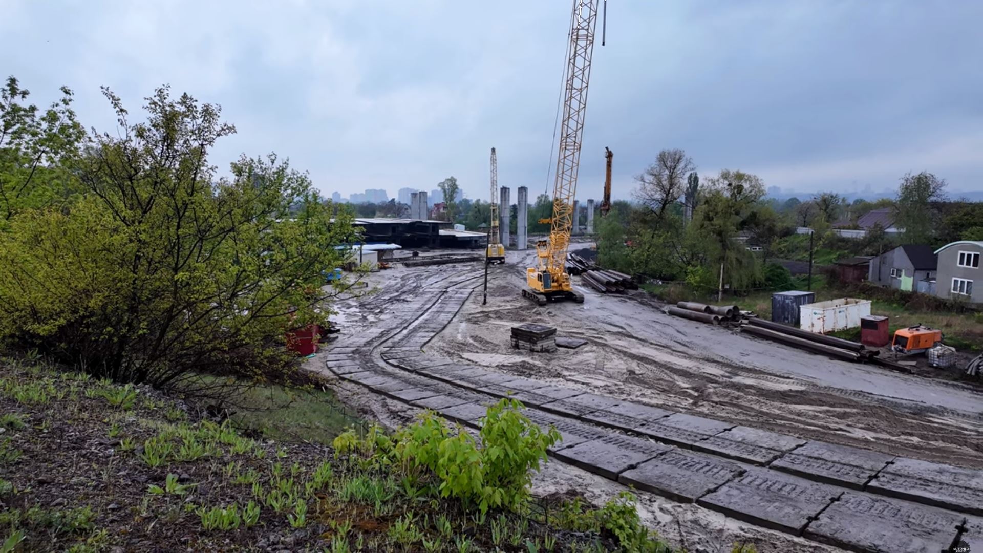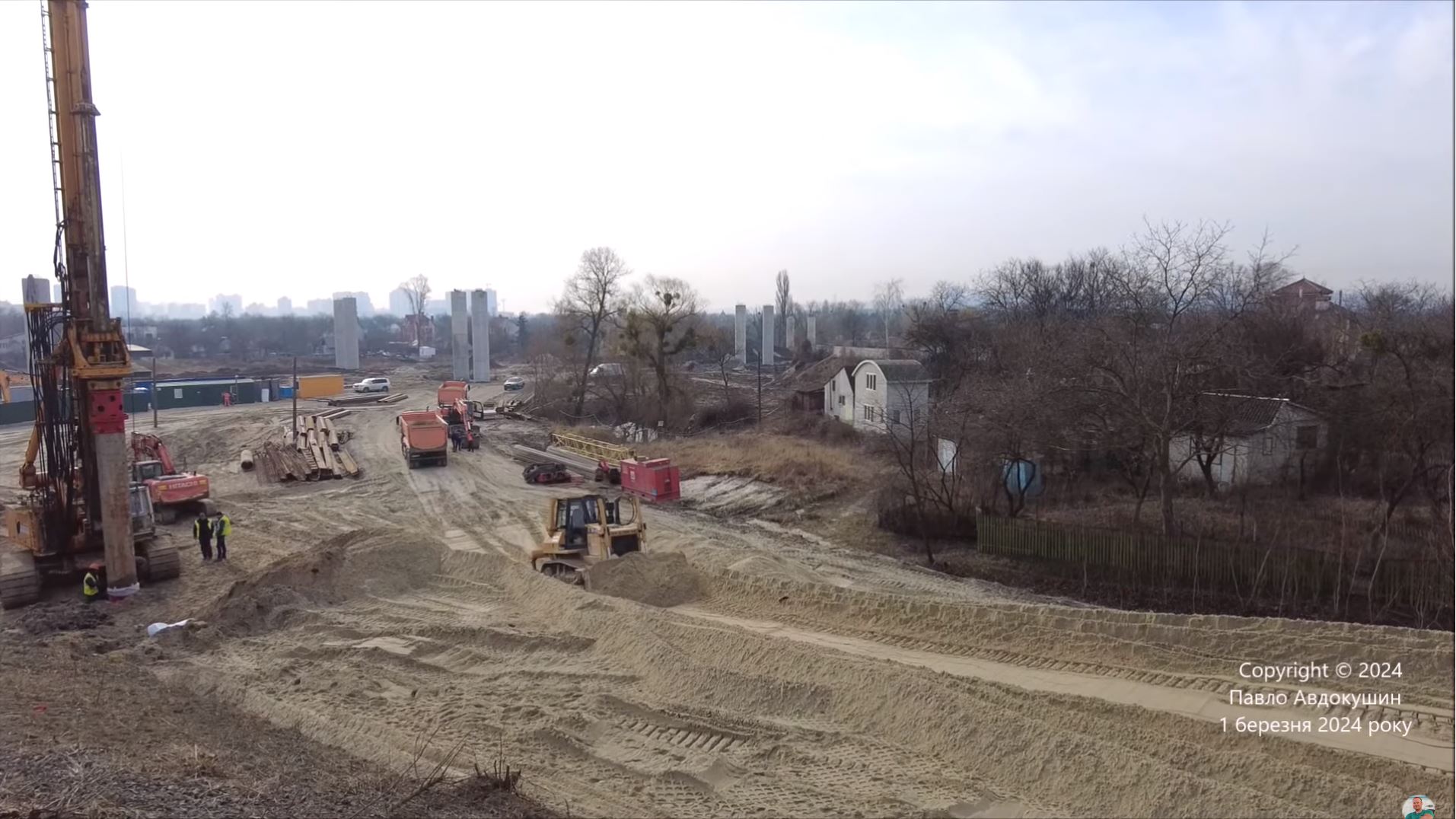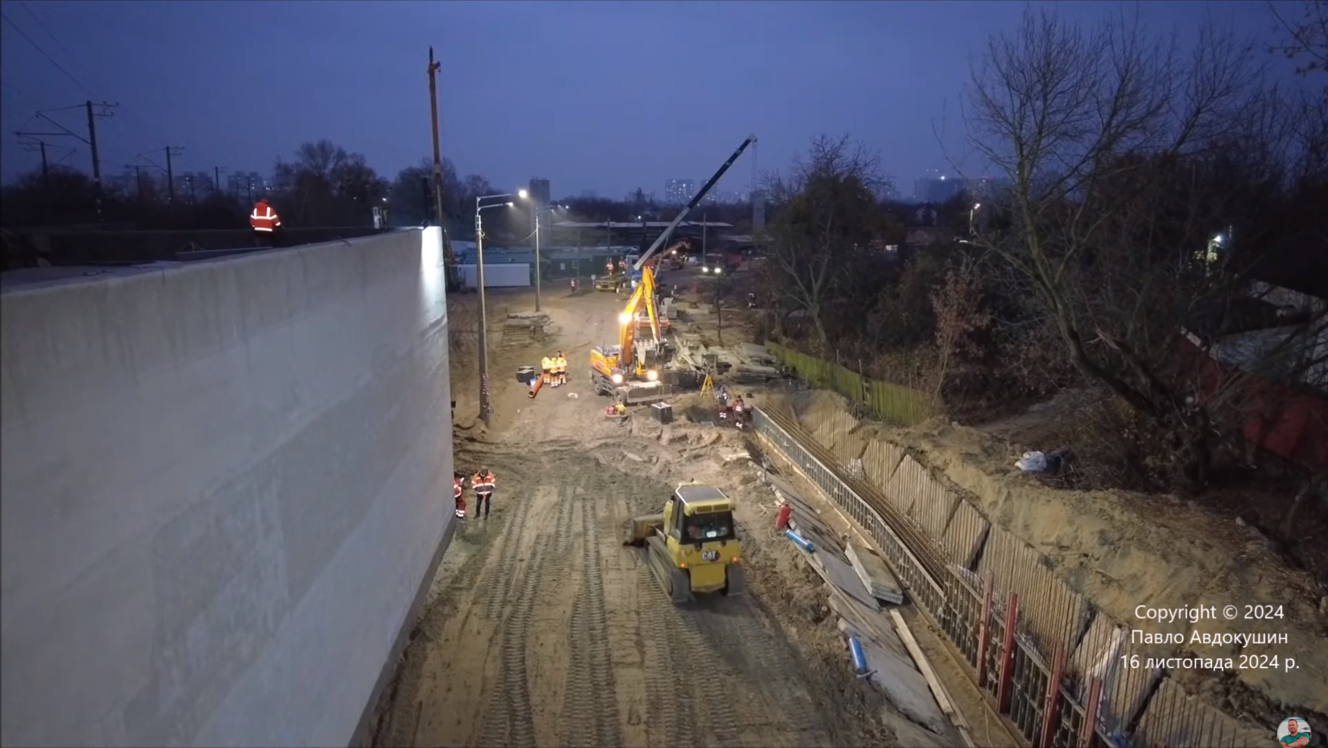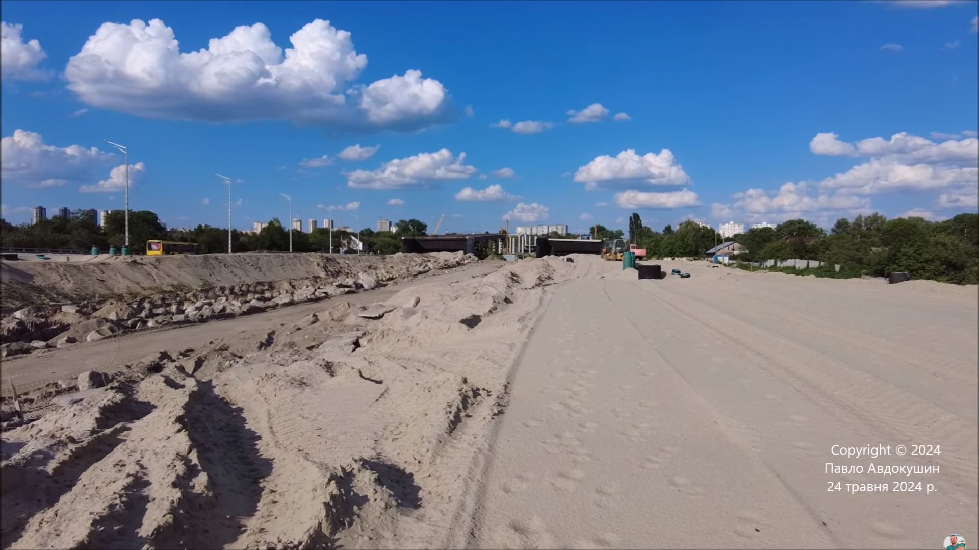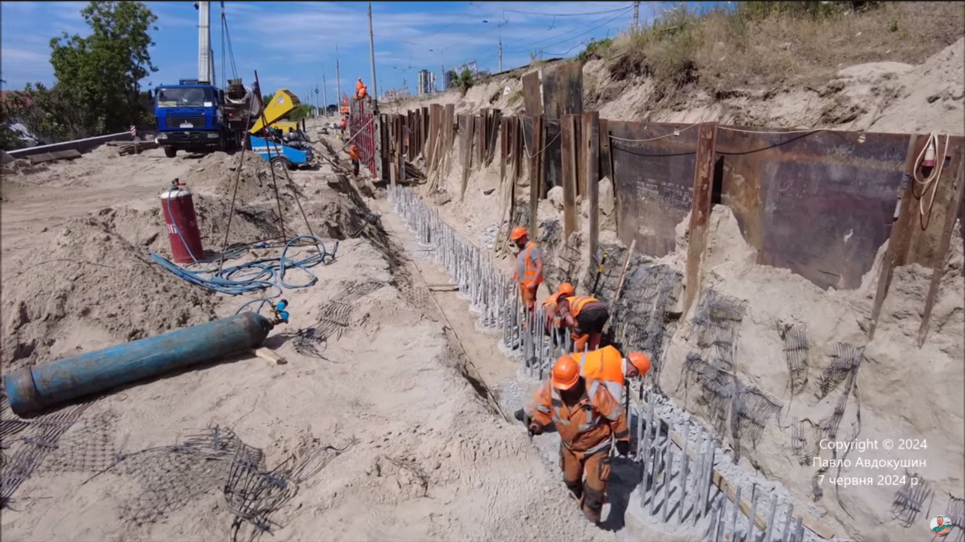 Зараз продовжують насипати насипи прямого проїзду: верховий та низовий. Паралельно розпочинають продовжувати тунелі метро на Троєщину. Причому робиться це діляночками. І першими йде верховий тунель, а його наздоганяє низовий. І отак будуть вони чередуватися.
