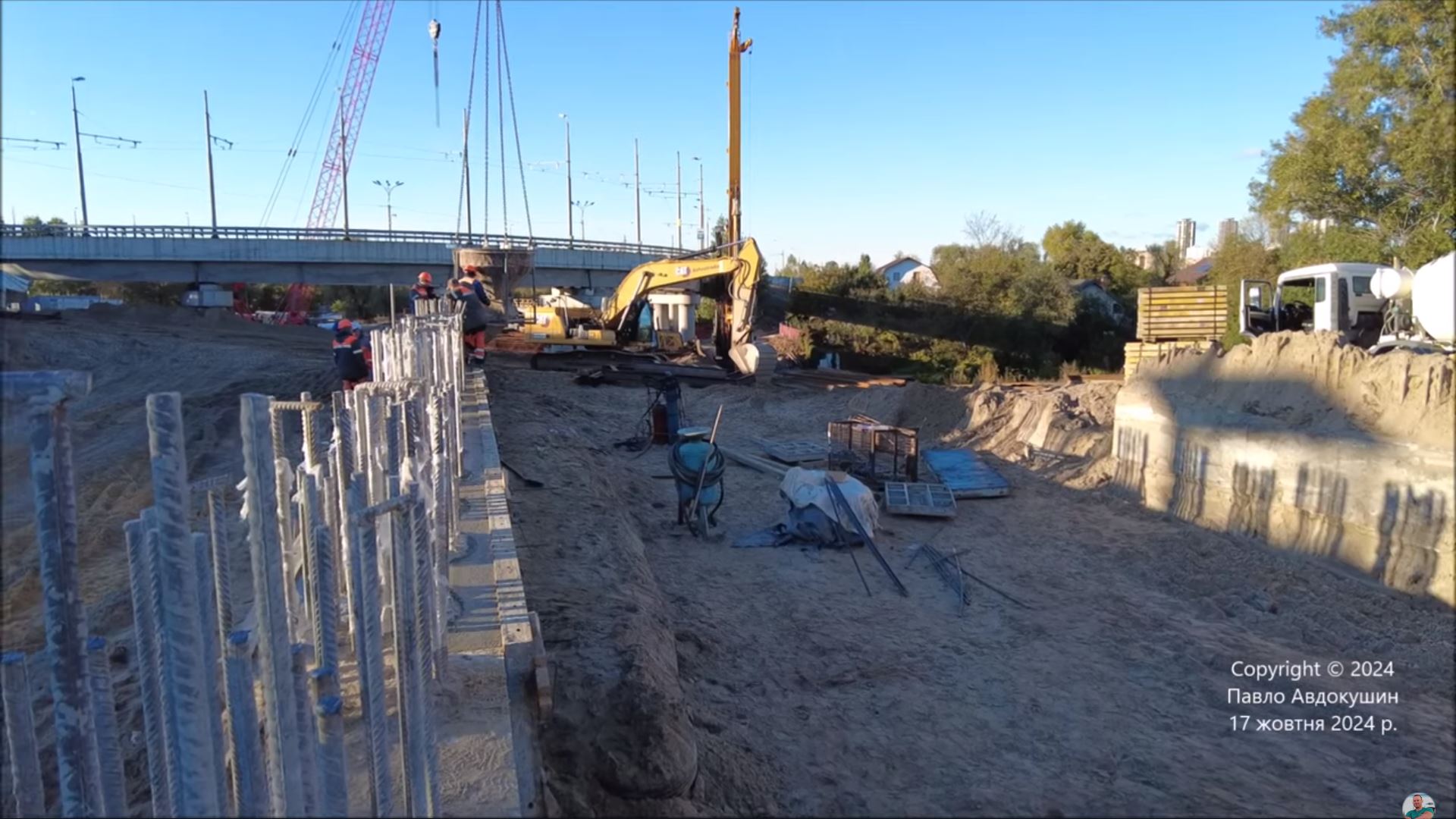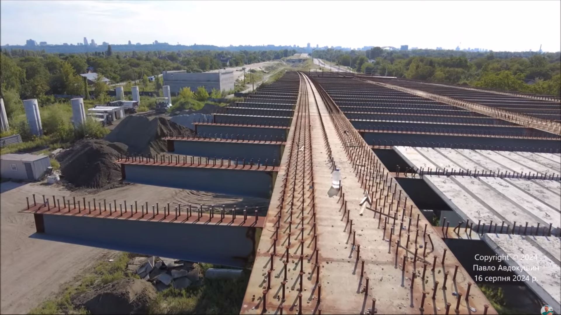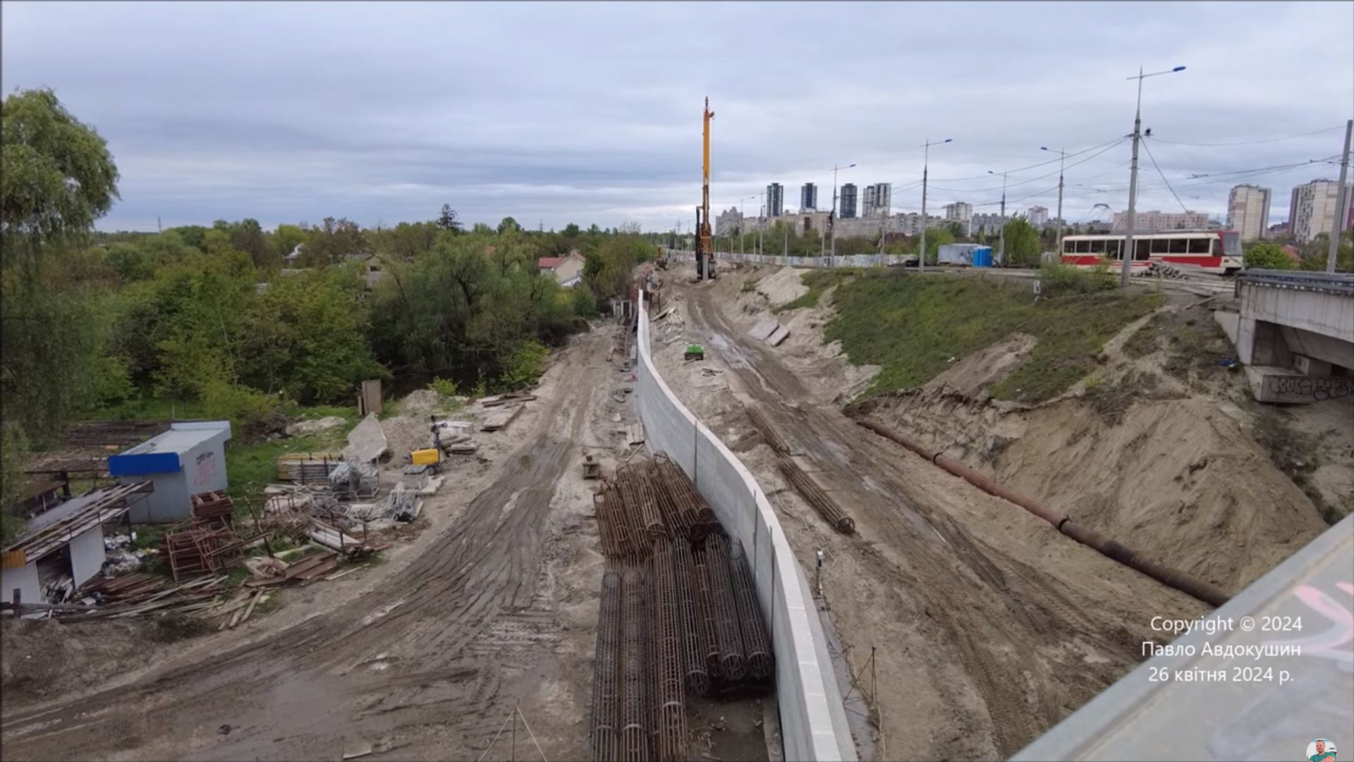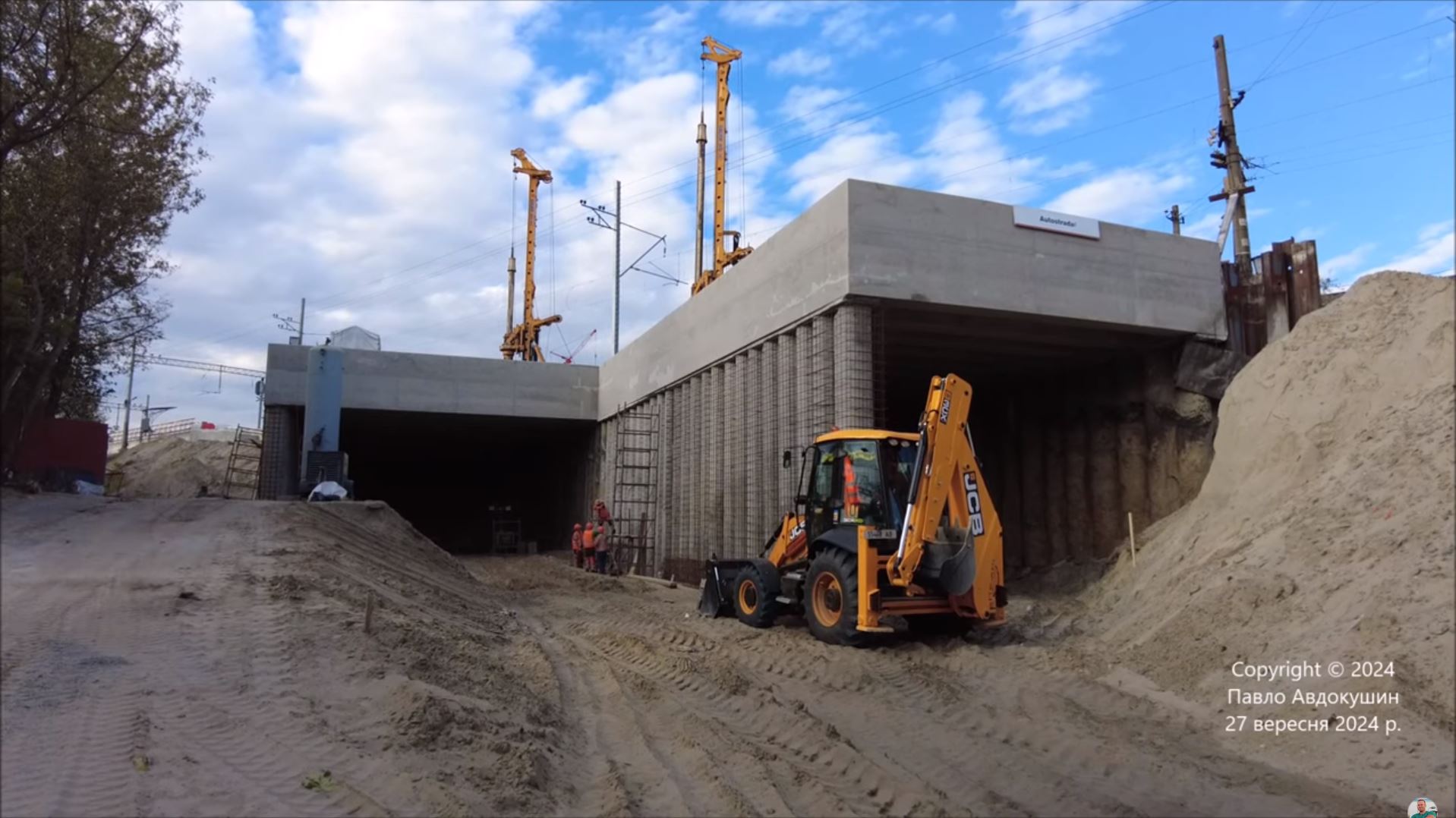 Зараз продовжують насипати насипи прямого проїзду: верховий та низовий. Паралельно розпочинають продовжувати тунелі метро на Троєщину. Причому робиться це діляночками. І першими йде верховий тунель, а його наздоганяє низовий. І отак будуть вони чередуватися.
