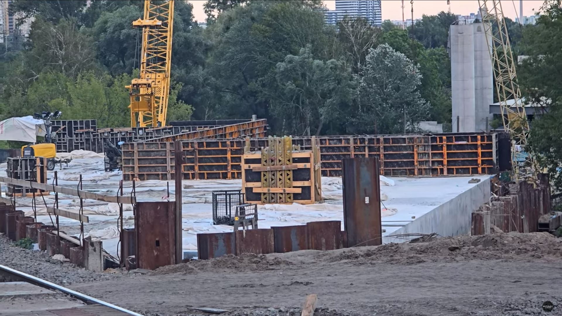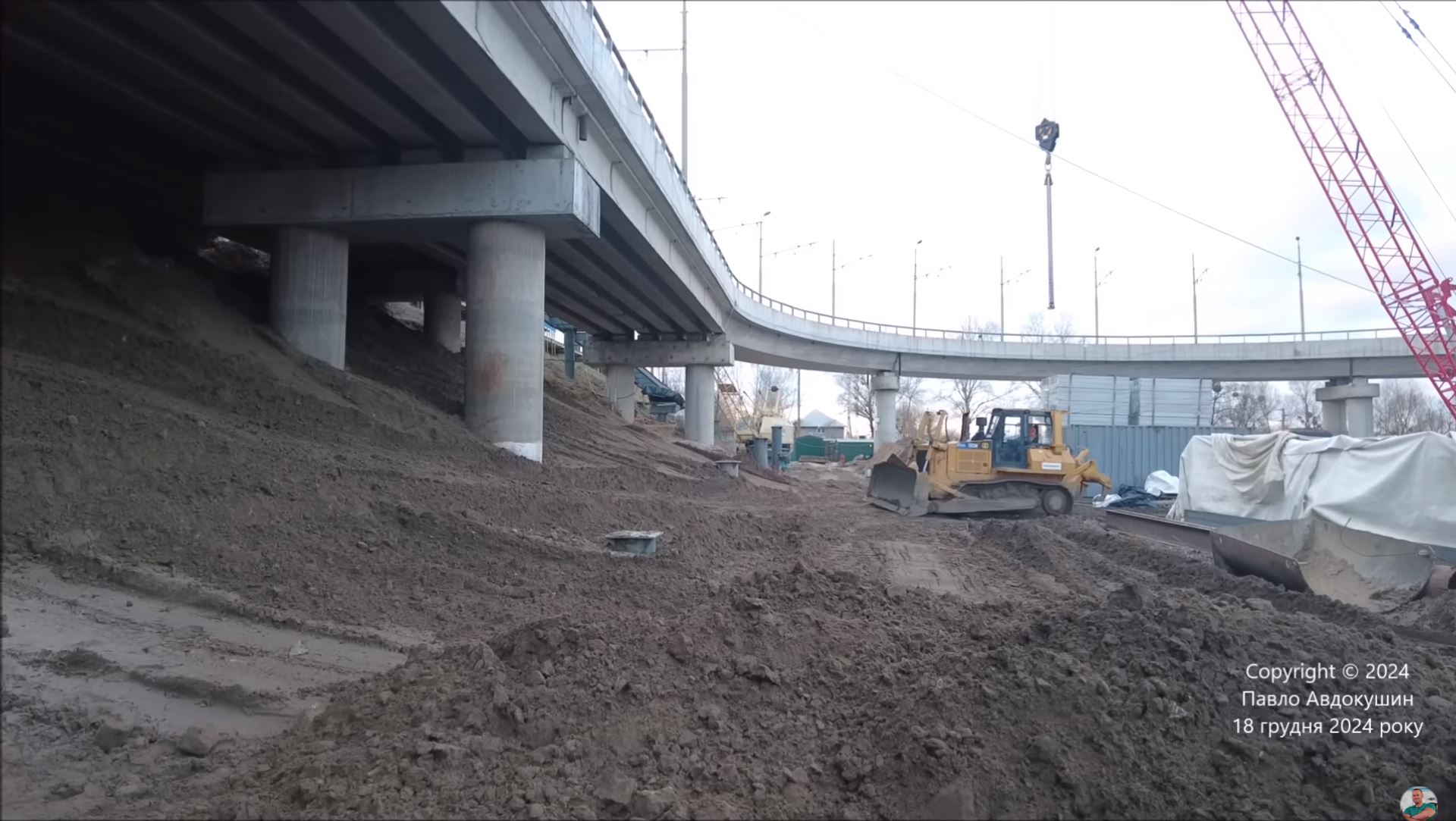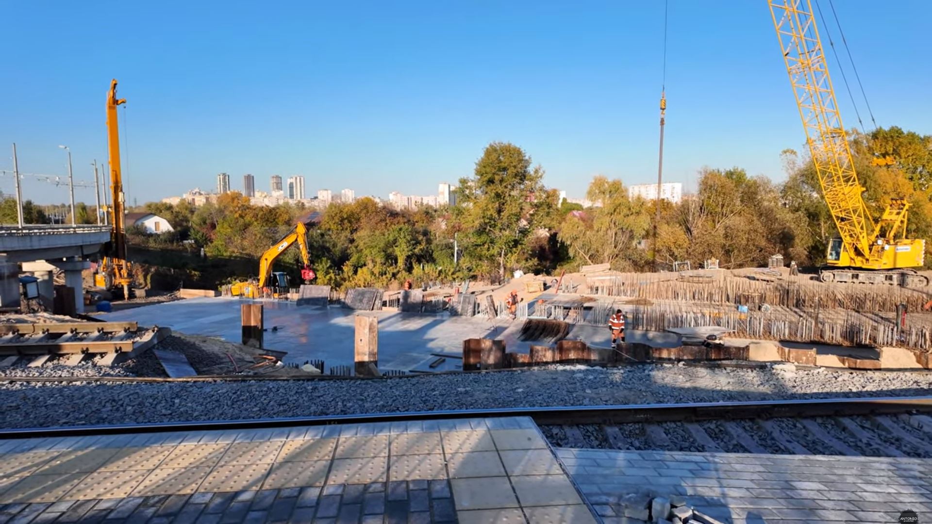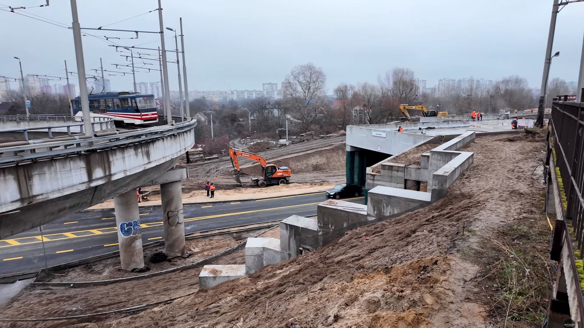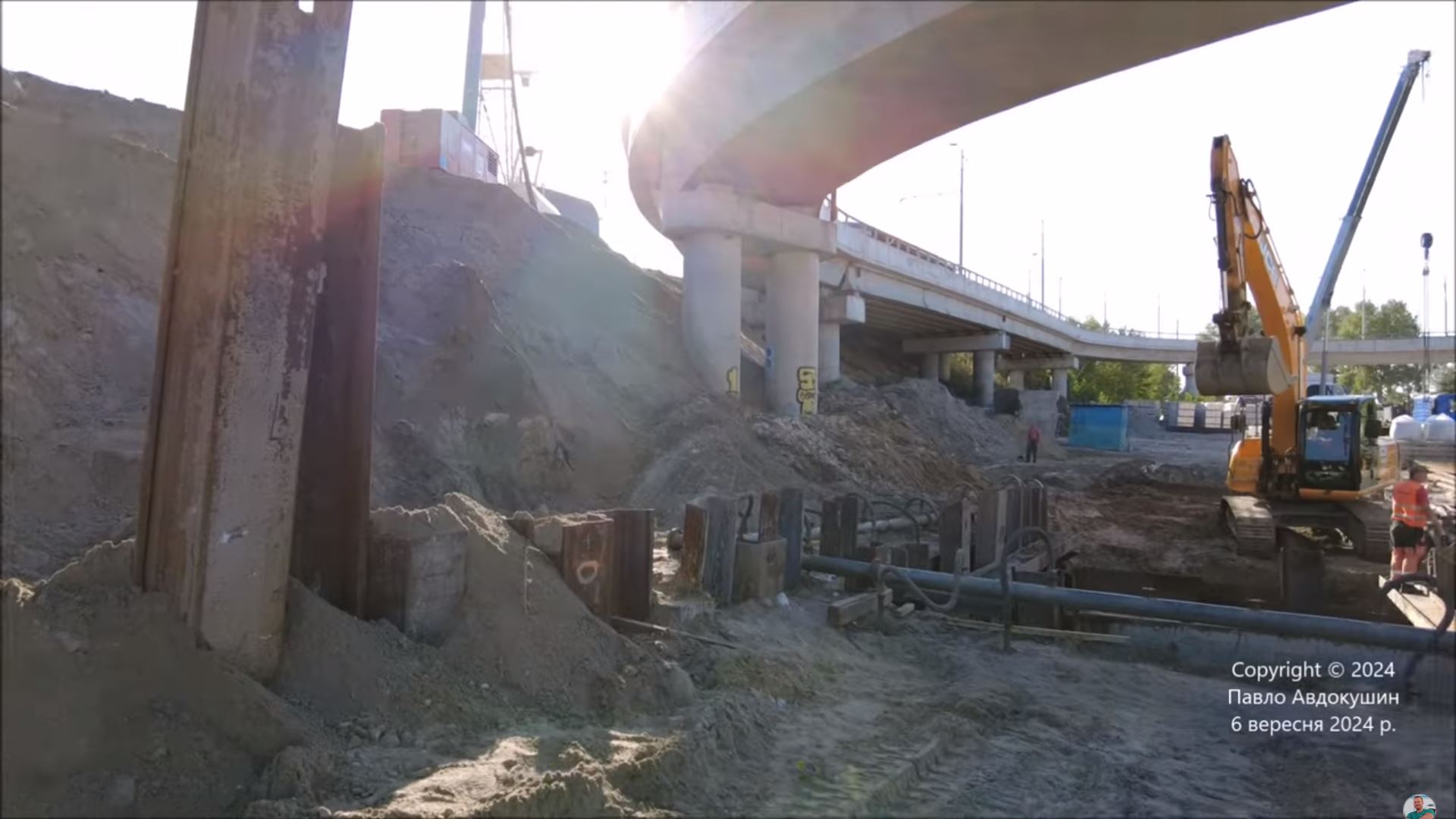 Зараз продовжують насипати насипи прямого проїзду: верховий та низовий. Паралельно розпочинають продовжувати тунелі метро на Троєщину. Причому робиться це діляночками. І першими йде верховий тунель, а його наздоганяє низовий. І отак будуть вони чередуватися.