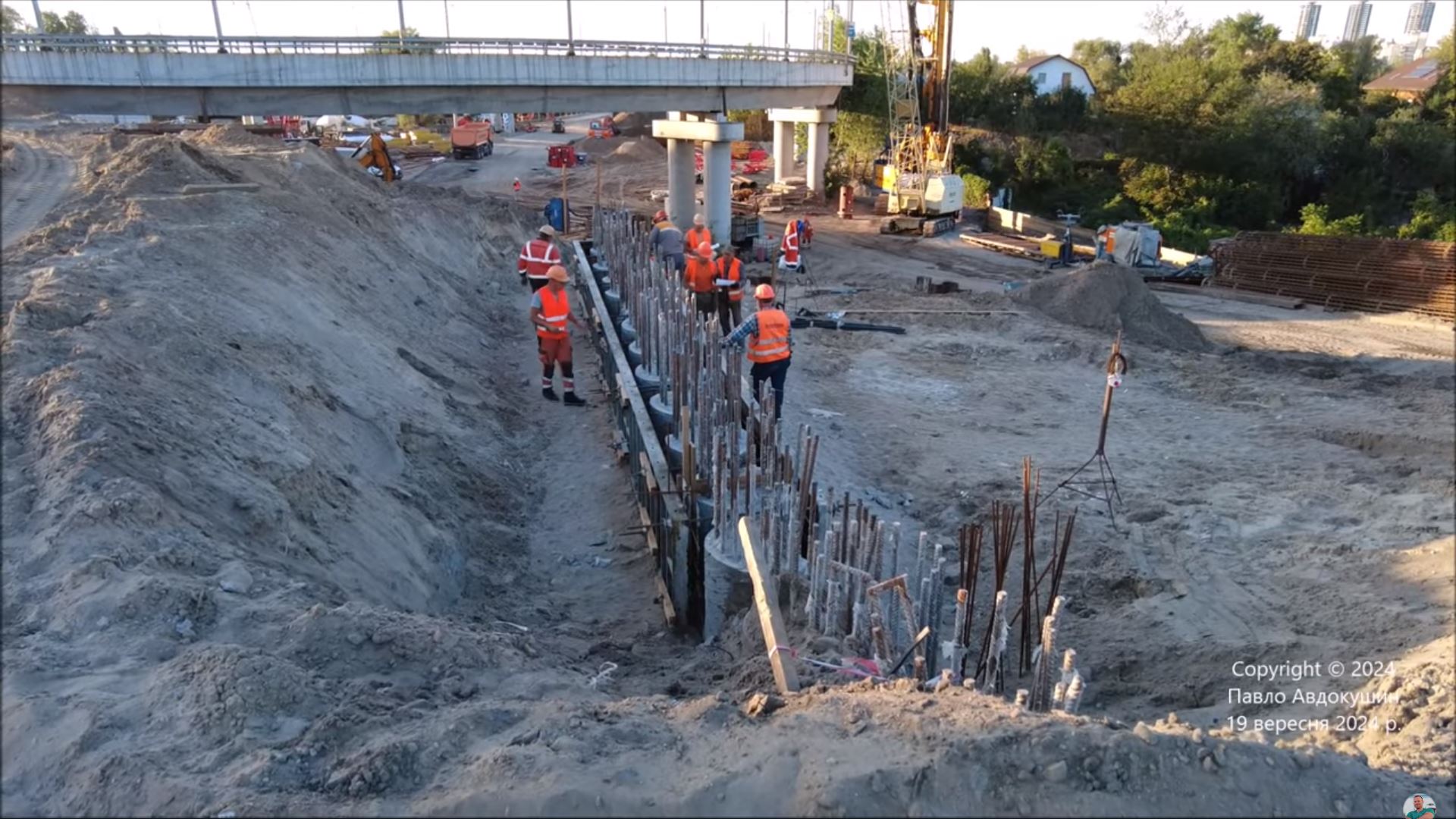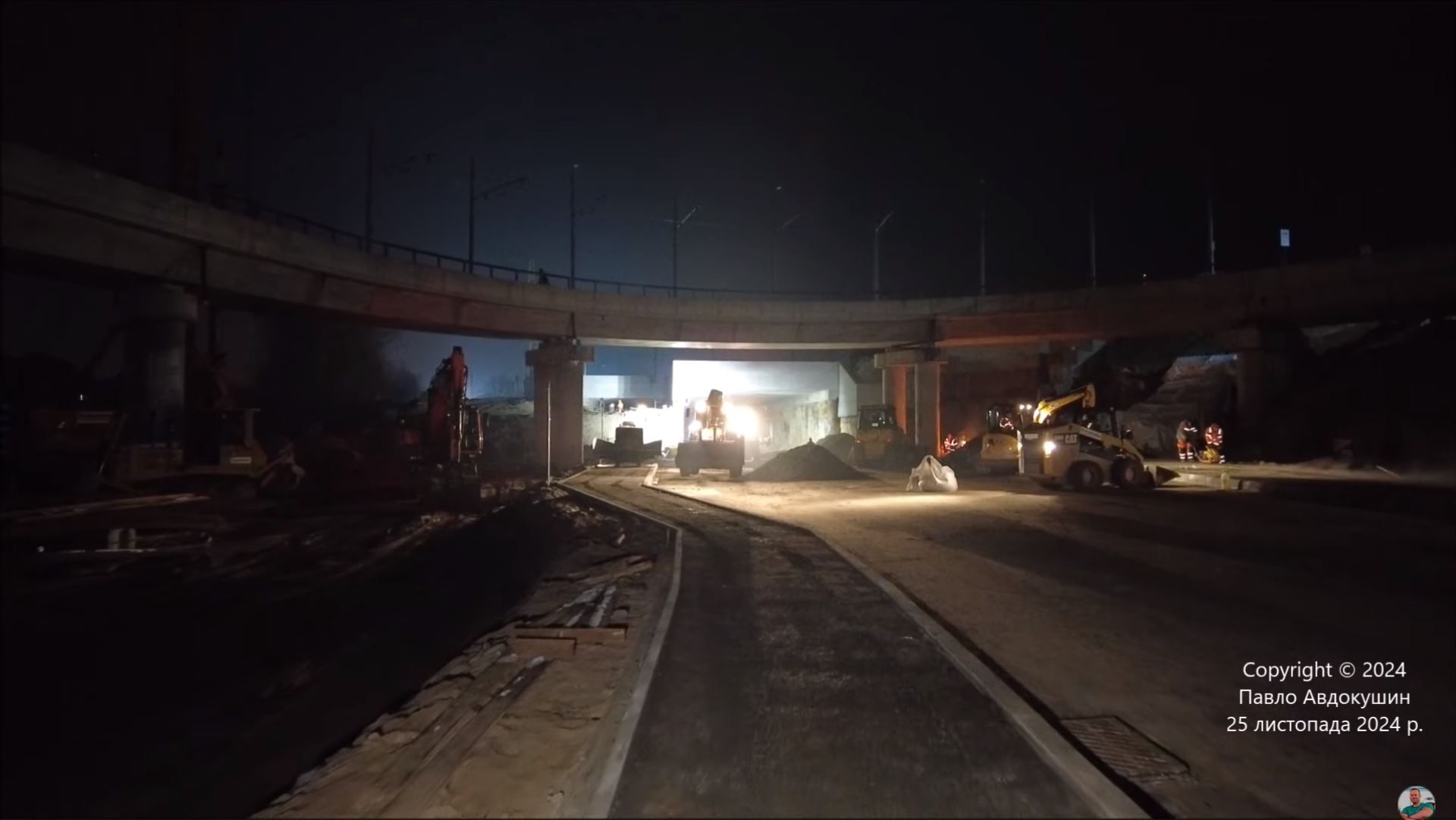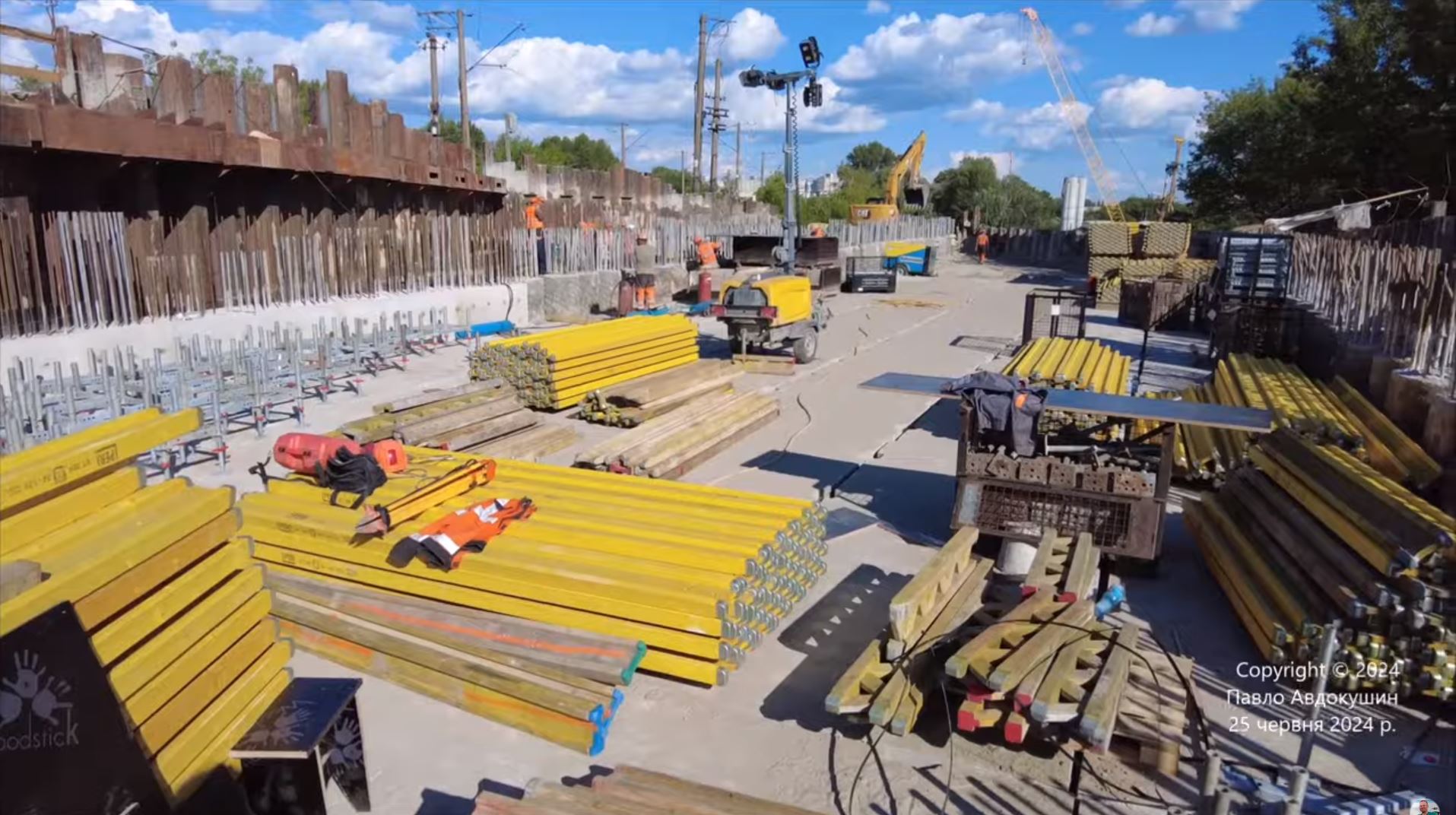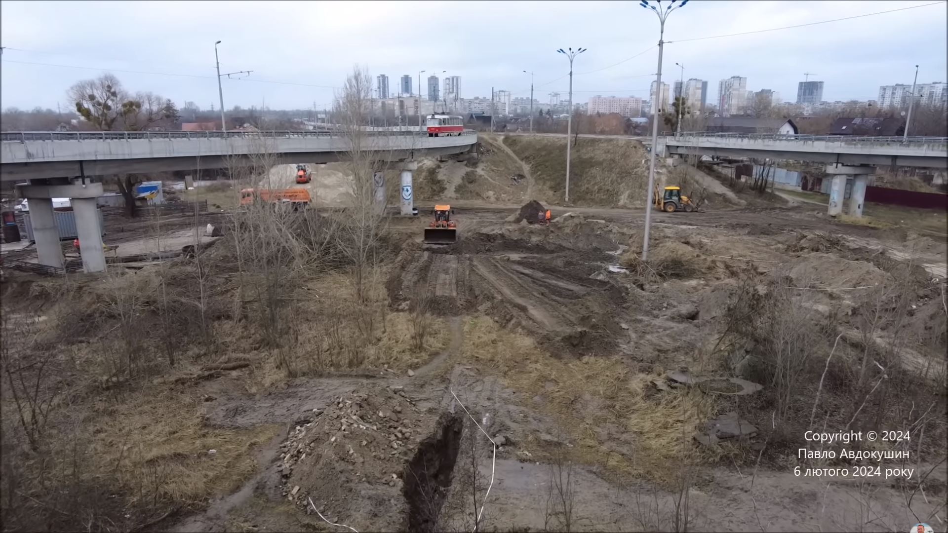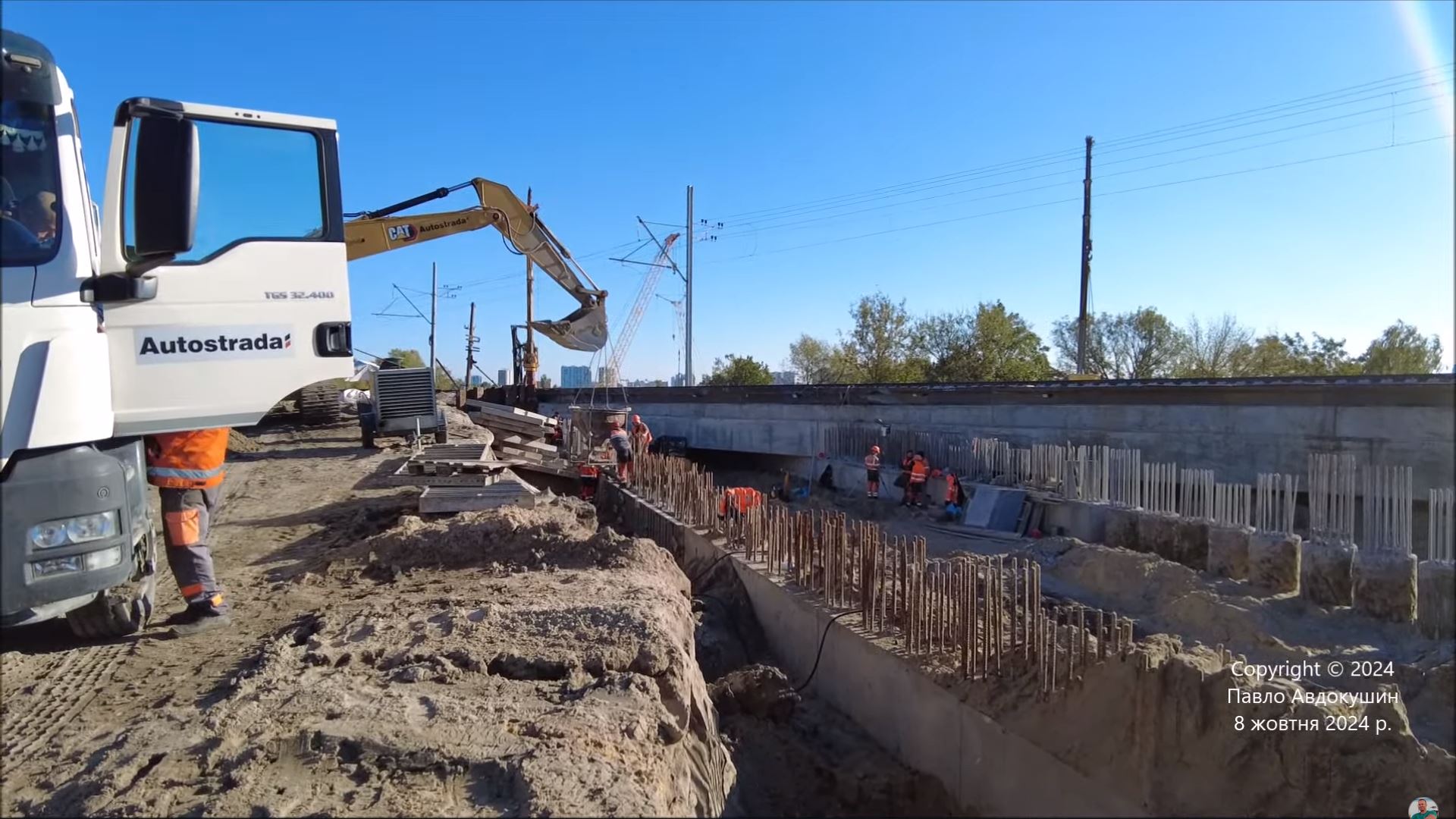 Зараз продовжують насипати насипи прямого проїзду: верховий та низовий. Паралельно розпочинають продовжувати тунелі метро на Троєщину. Причому робиться це діляночками. І першими йде верховий тунель, а його наздоганяє низовий. І отак будуть вони чередуватися.