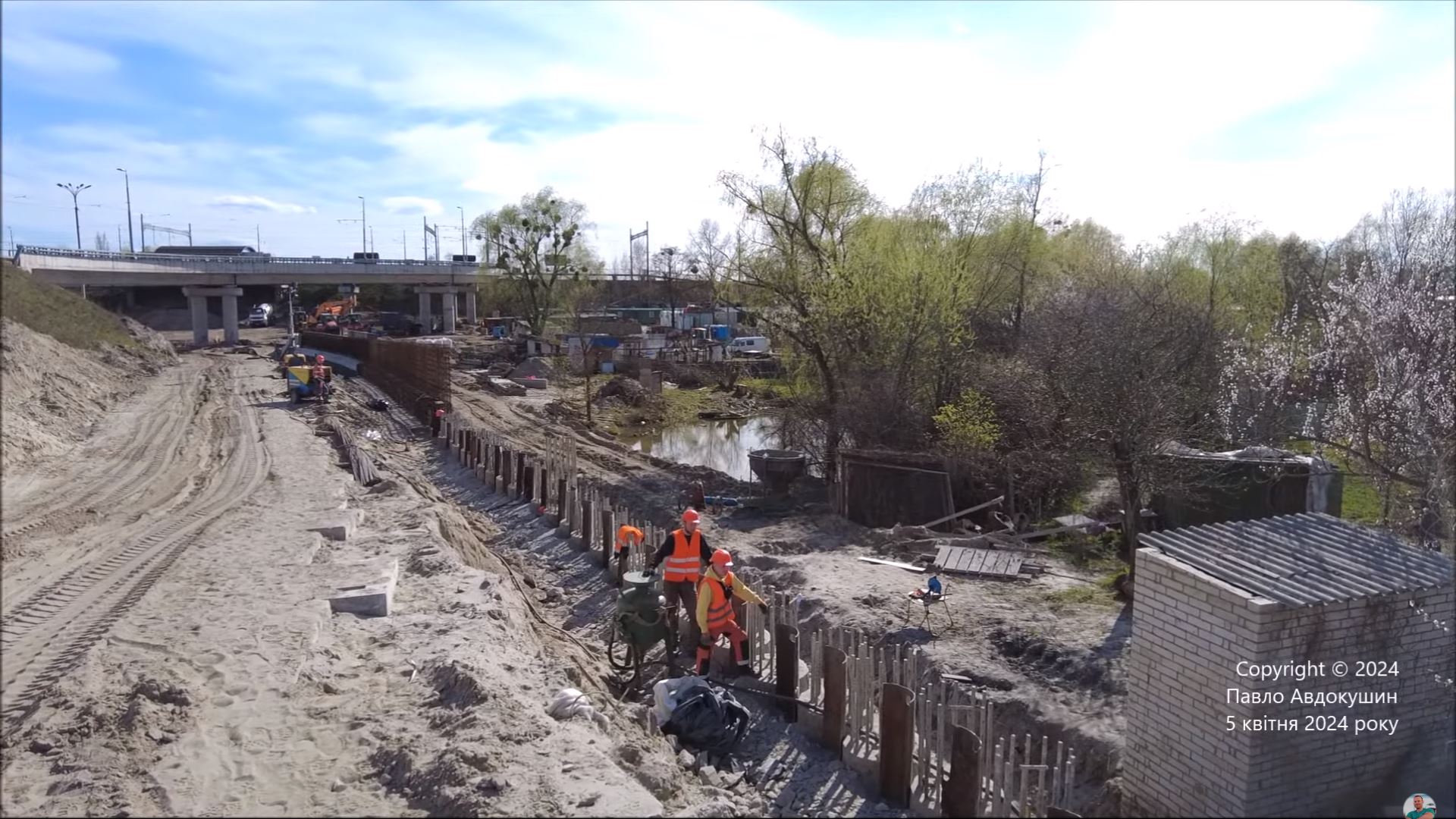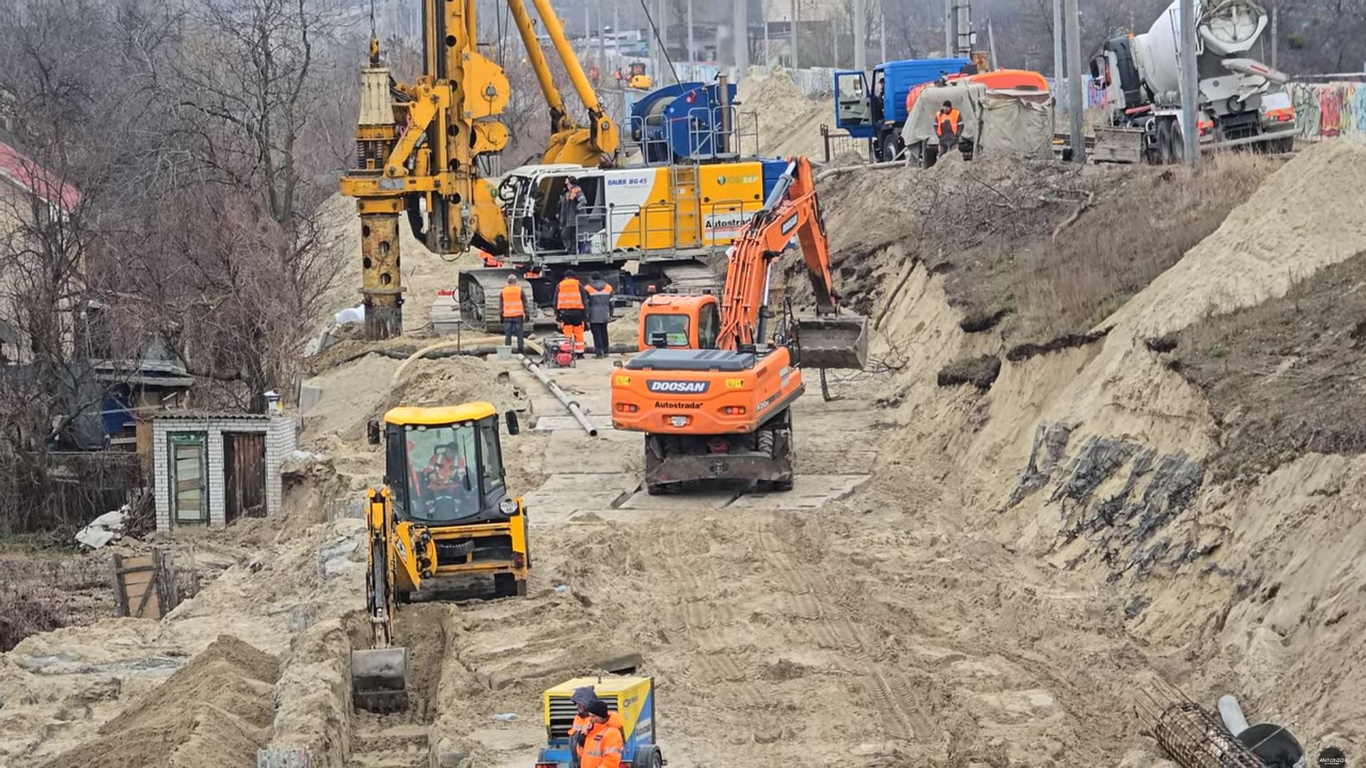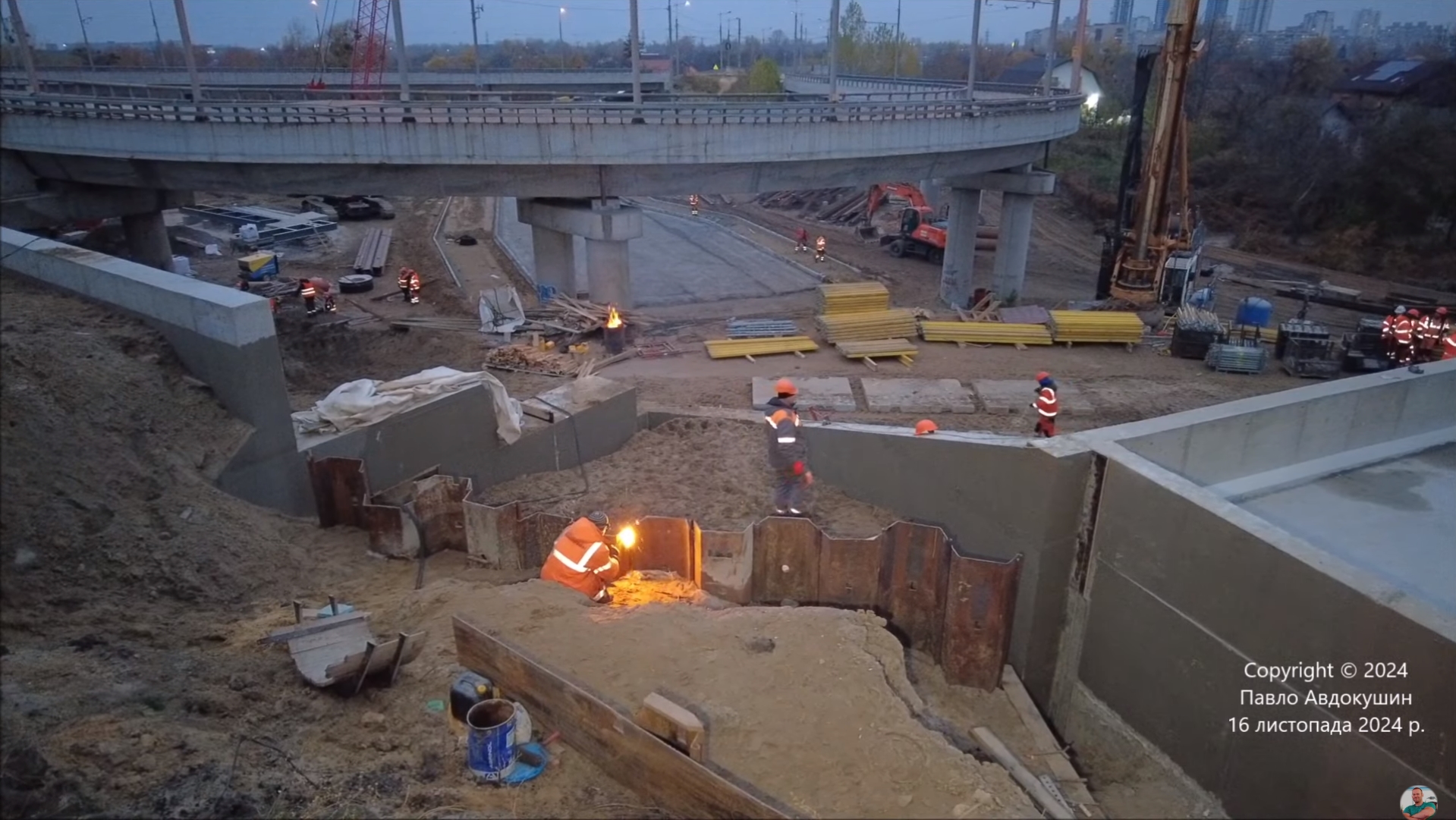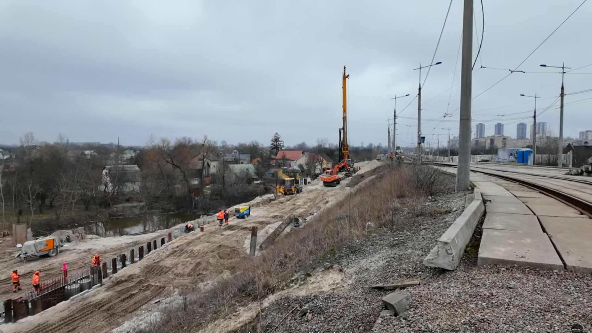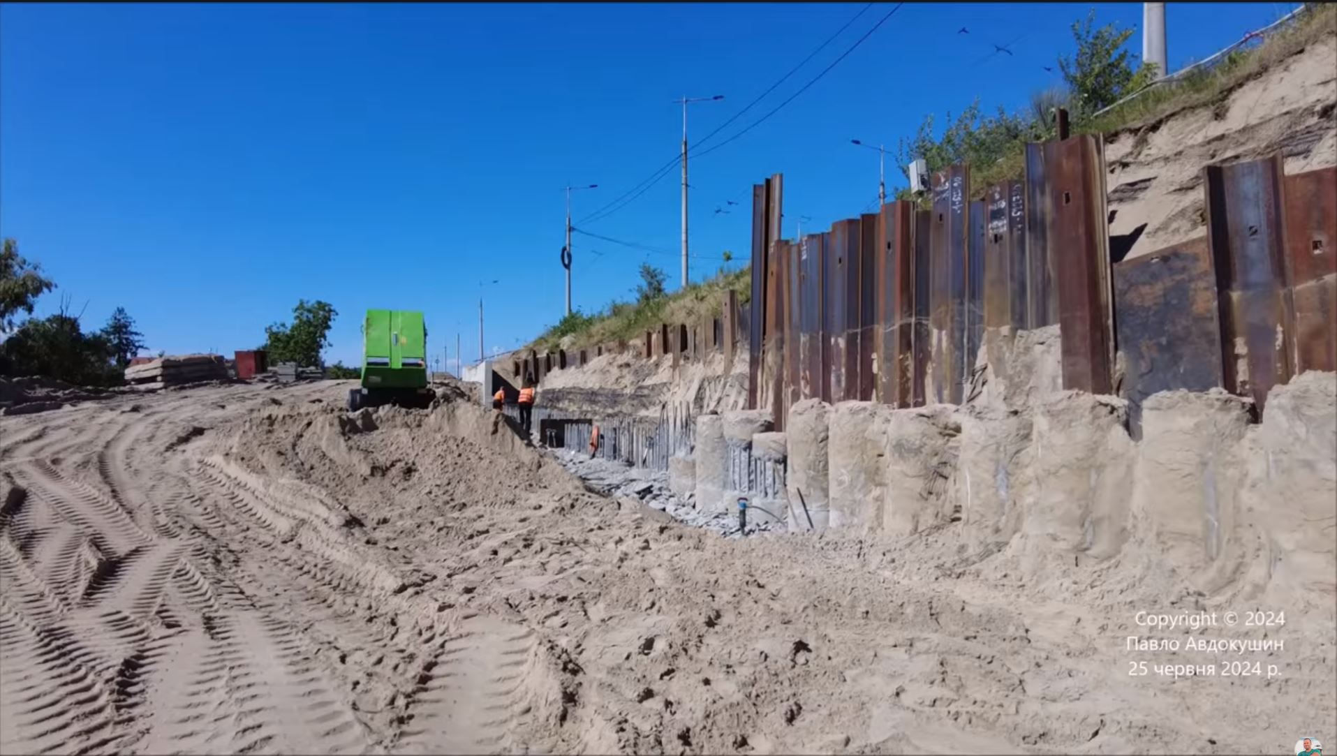 Зараз продовжують насипати насипи прямого проїзду: верховий та низовий. Паралельно розпочинають продовжувати тунелі метро на Троєщину. Причому робиться це діляночками. І першими йде верховий тунель, а його наздоганяє низовий. І отак будуть вони чередуватися.
