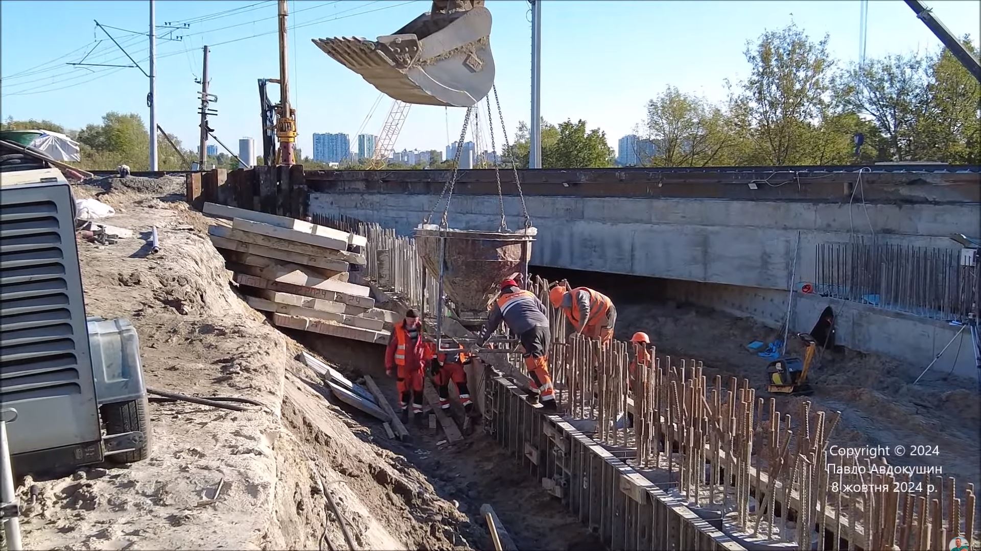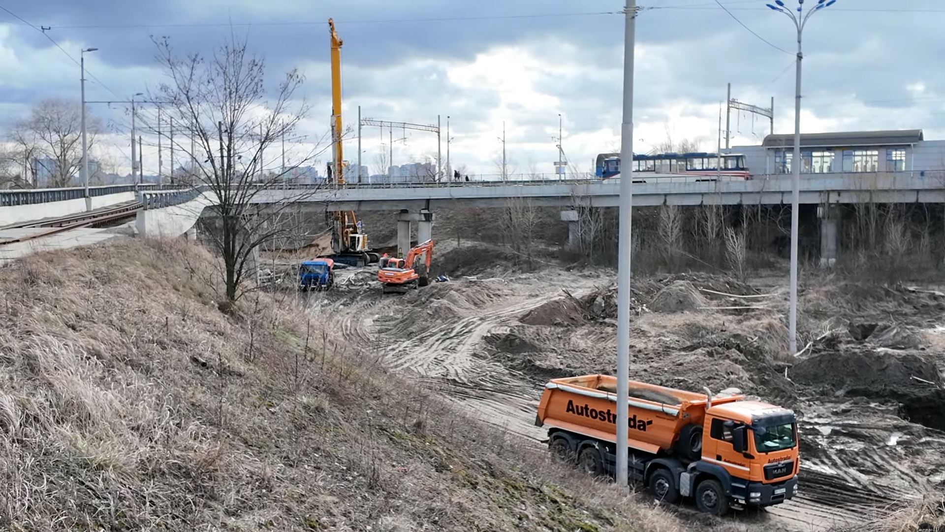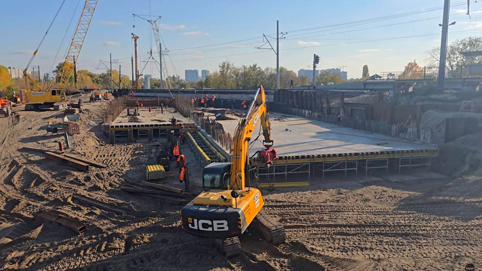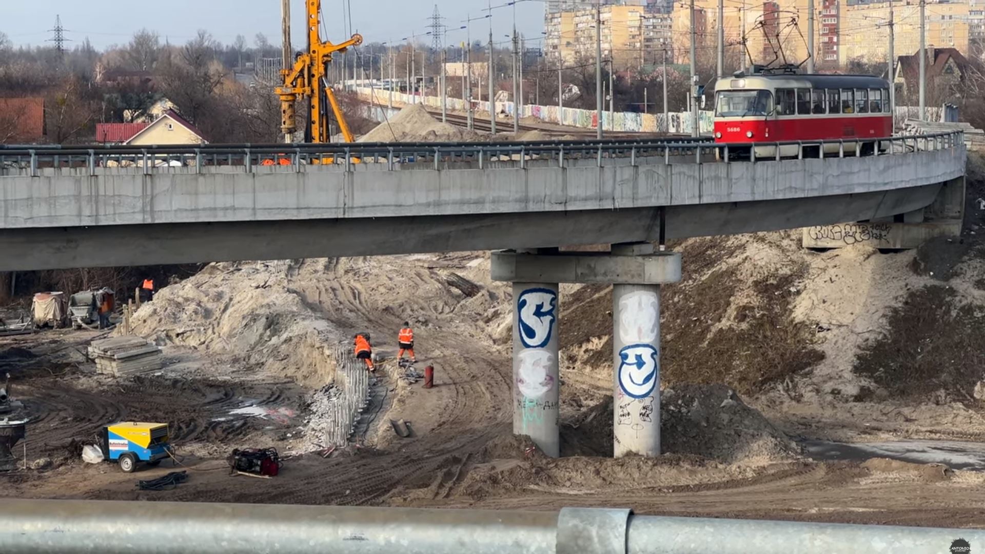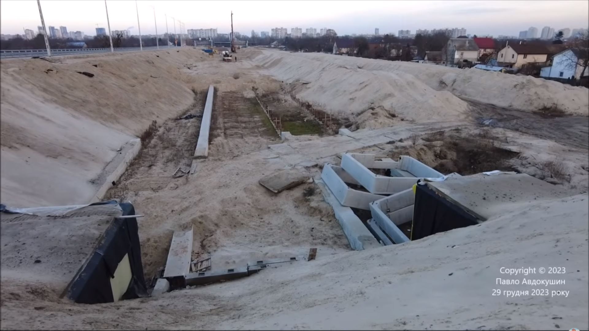 Зараз продовжують насипати насипи прямого проїзду: верховий та низовий. Паралельно розпочинають продовжувати тунелі метро на Троєщину. Причому робиться це діляночками. І першими йде верховий тунель, а його наздоганяє низовий. І отак будуть вони чередуватися.