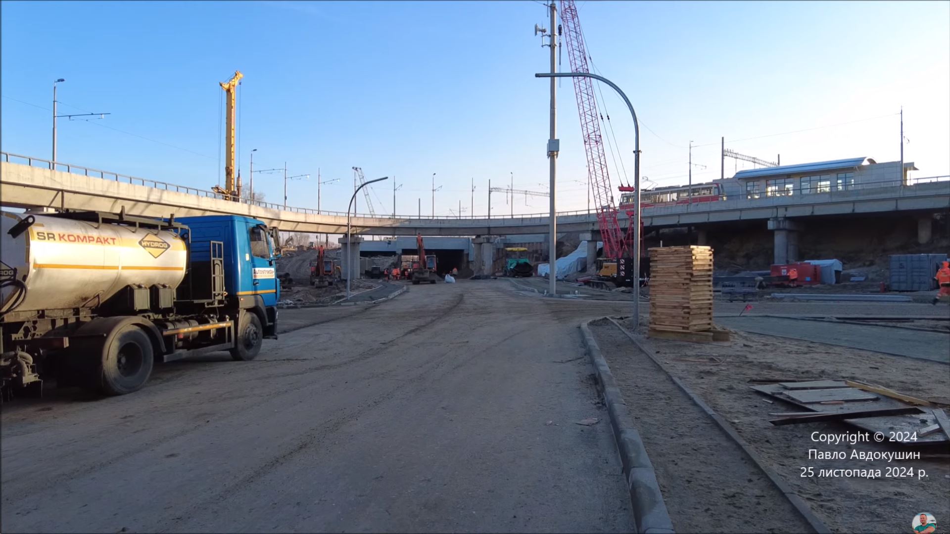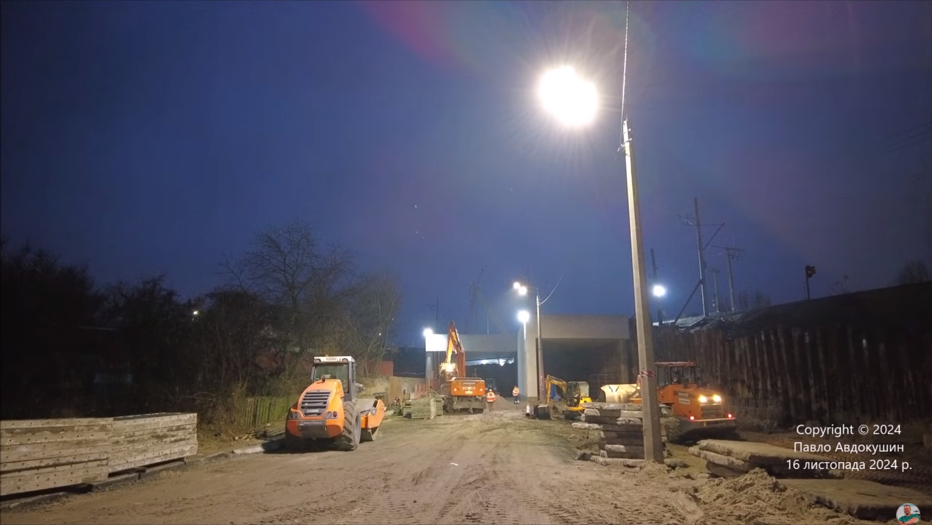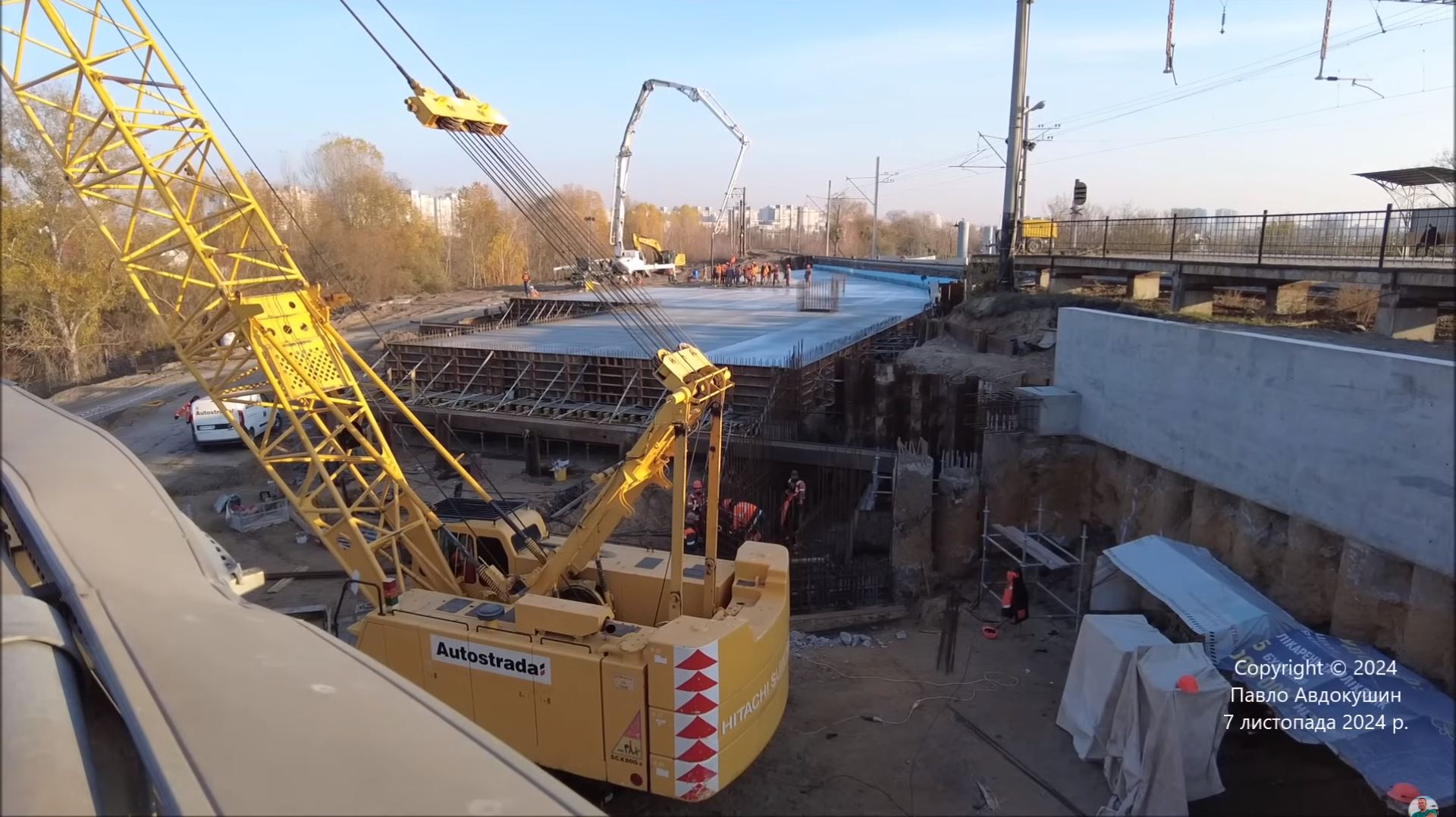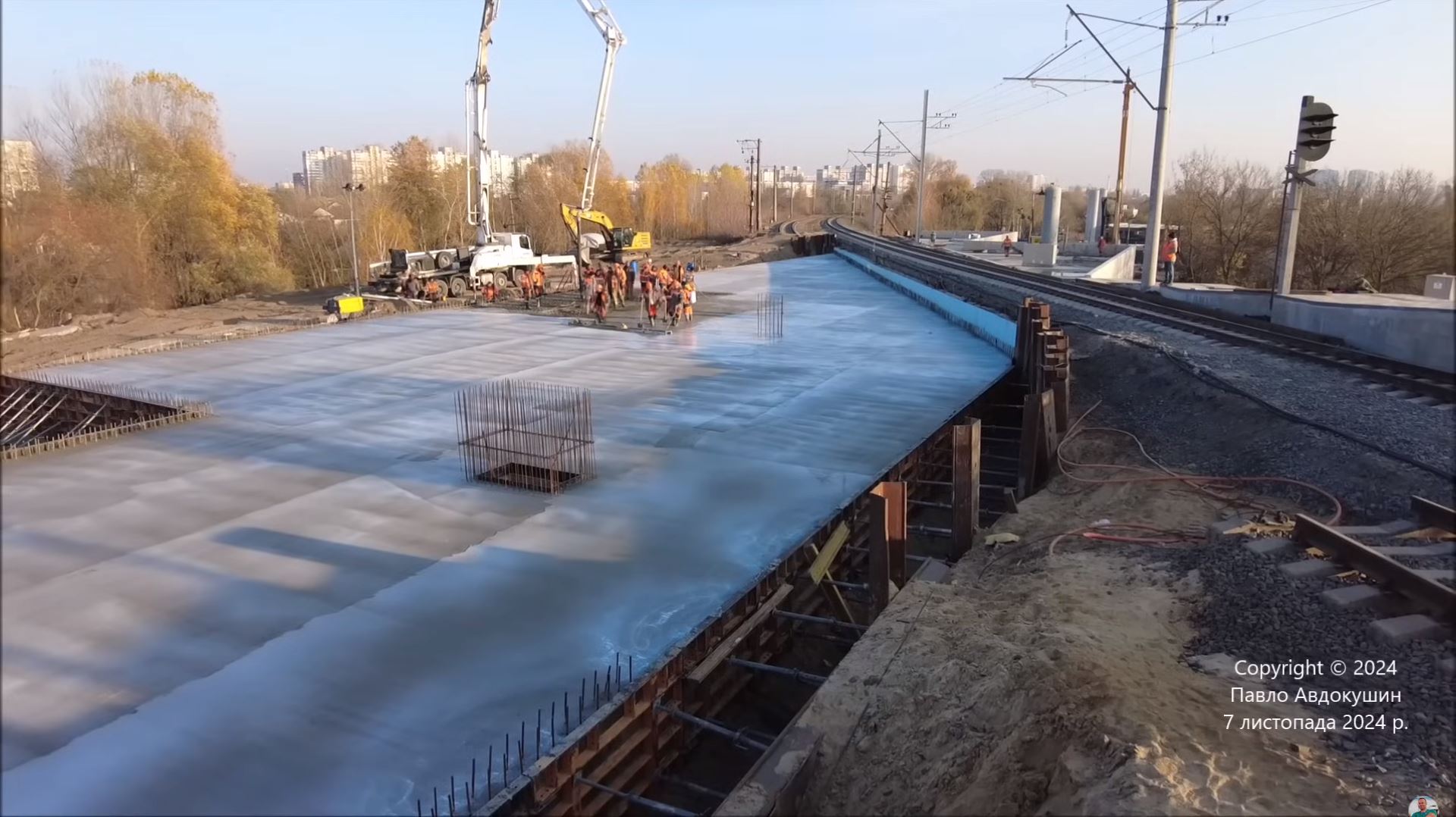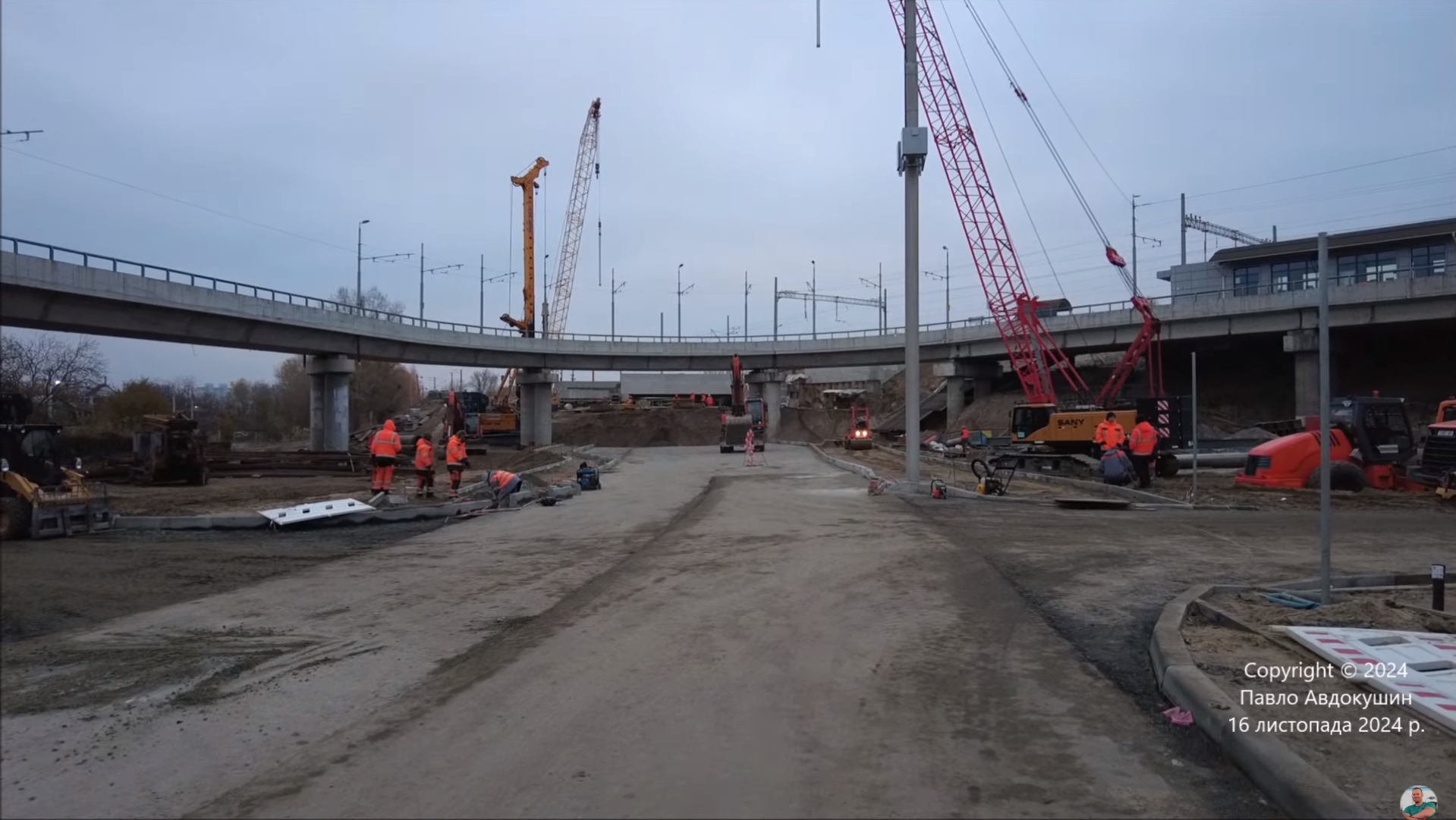 Зараз продовжують насипати насипи прямого проїзду: верховий та низовий. Паралельно розпочинають продовжувати тунелі метро на Троєщину. Причому робиться це діляночками. І першими йде верховий тунель, а його наздоганяє низовий. І отак будуть вони чередуватися.