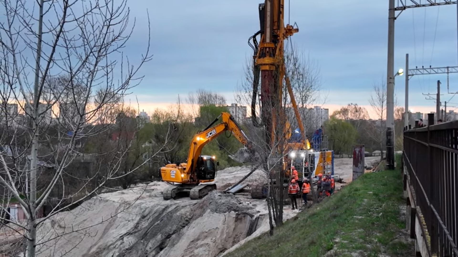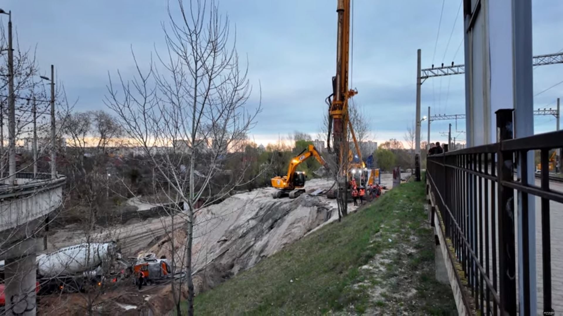 Подільський мостовий перехід! Підготовка до проколу під залізницею та робота двох бурових!