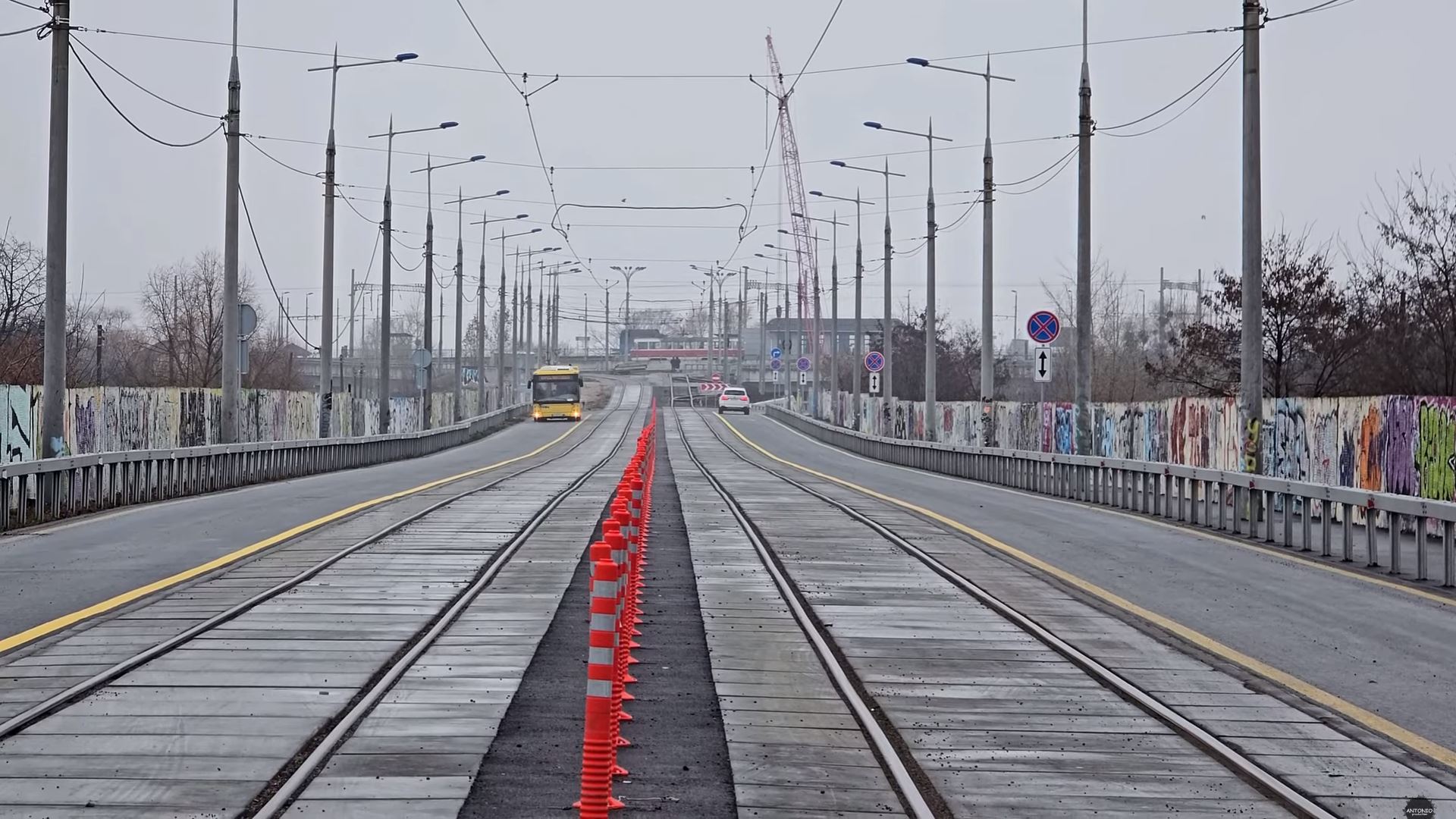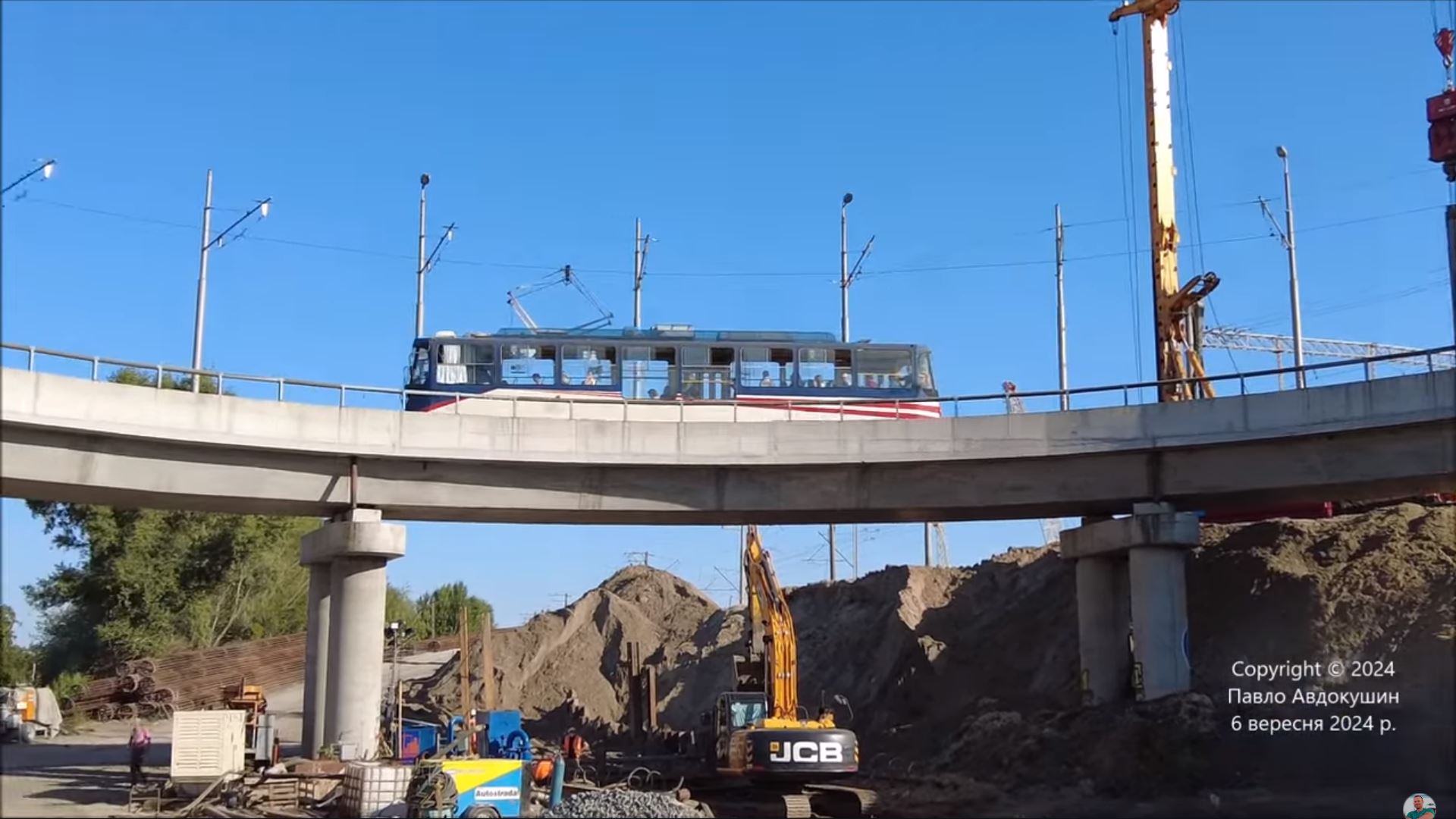 2. Використають прокол в зворотньому напрямку та заведуть туди трамвай. До речі, щирина проколу нам це підскаже.Судячи з епізоду 3:50 — 4:15 конструкцію розєднання північної частини естакади - "штани" змістили з місця їх зборки до місця установки над Центральною садовою. І це можливо відбудеться незабаром!
