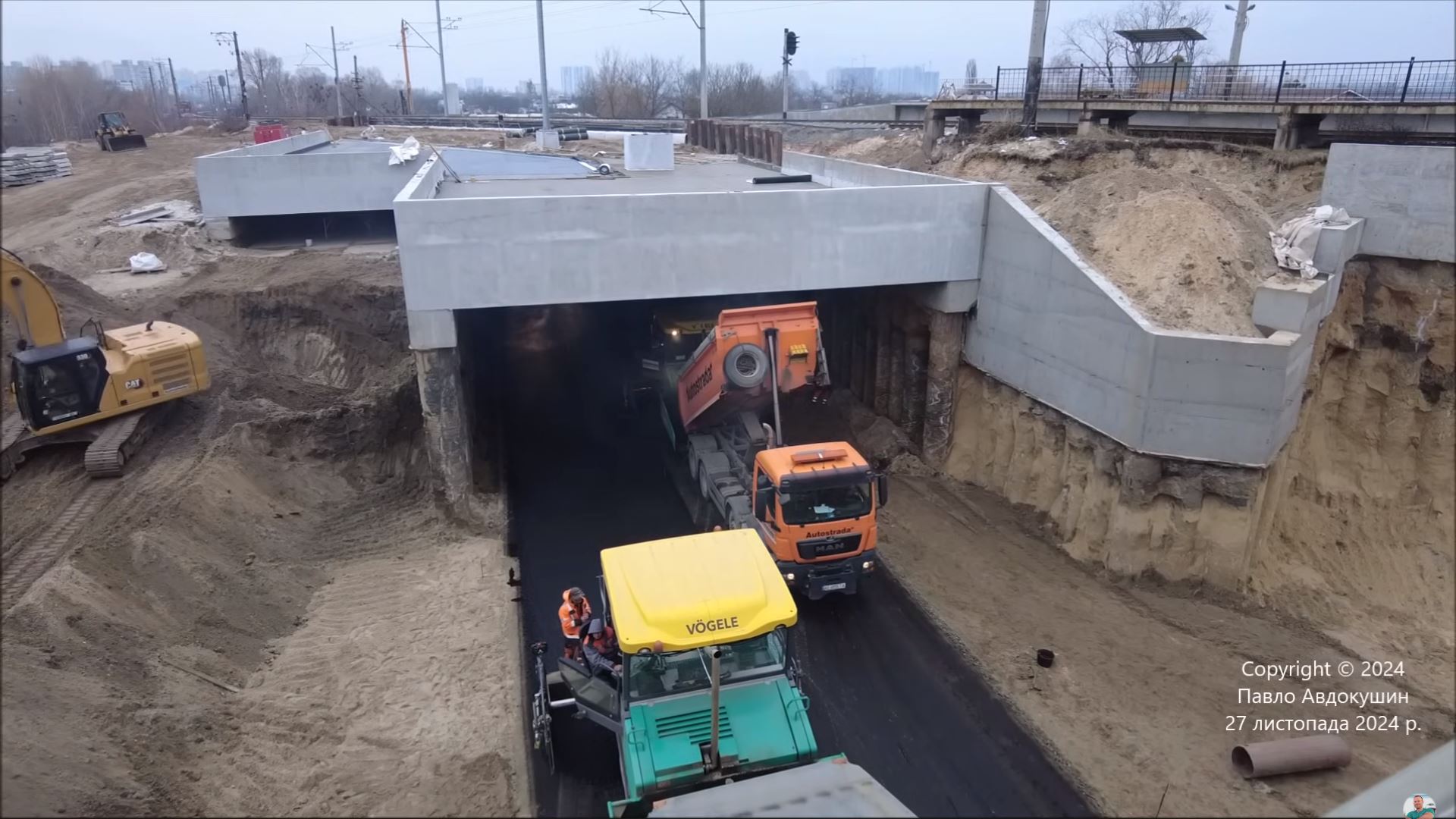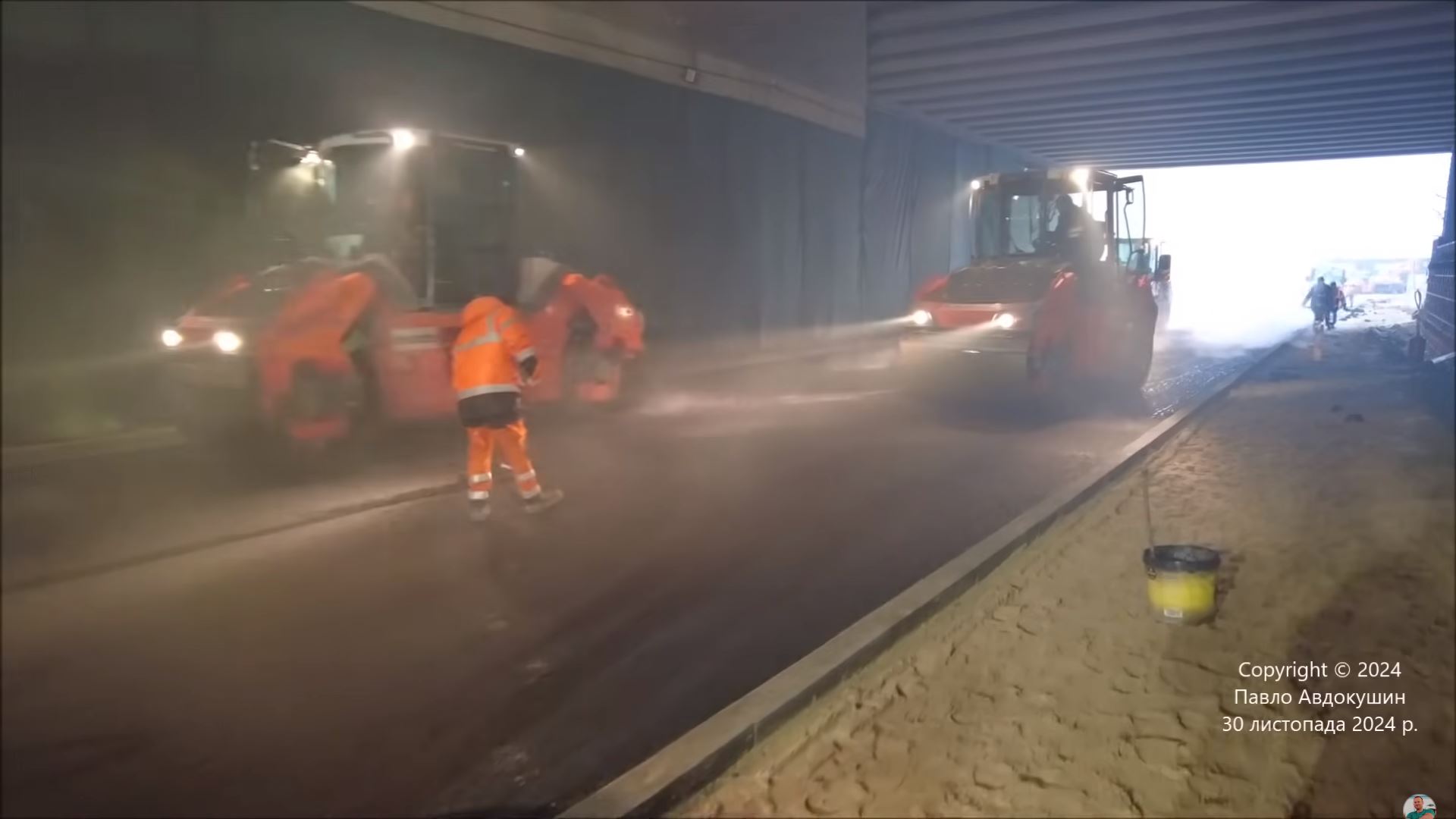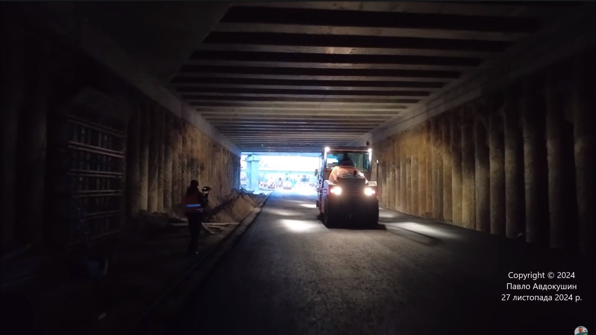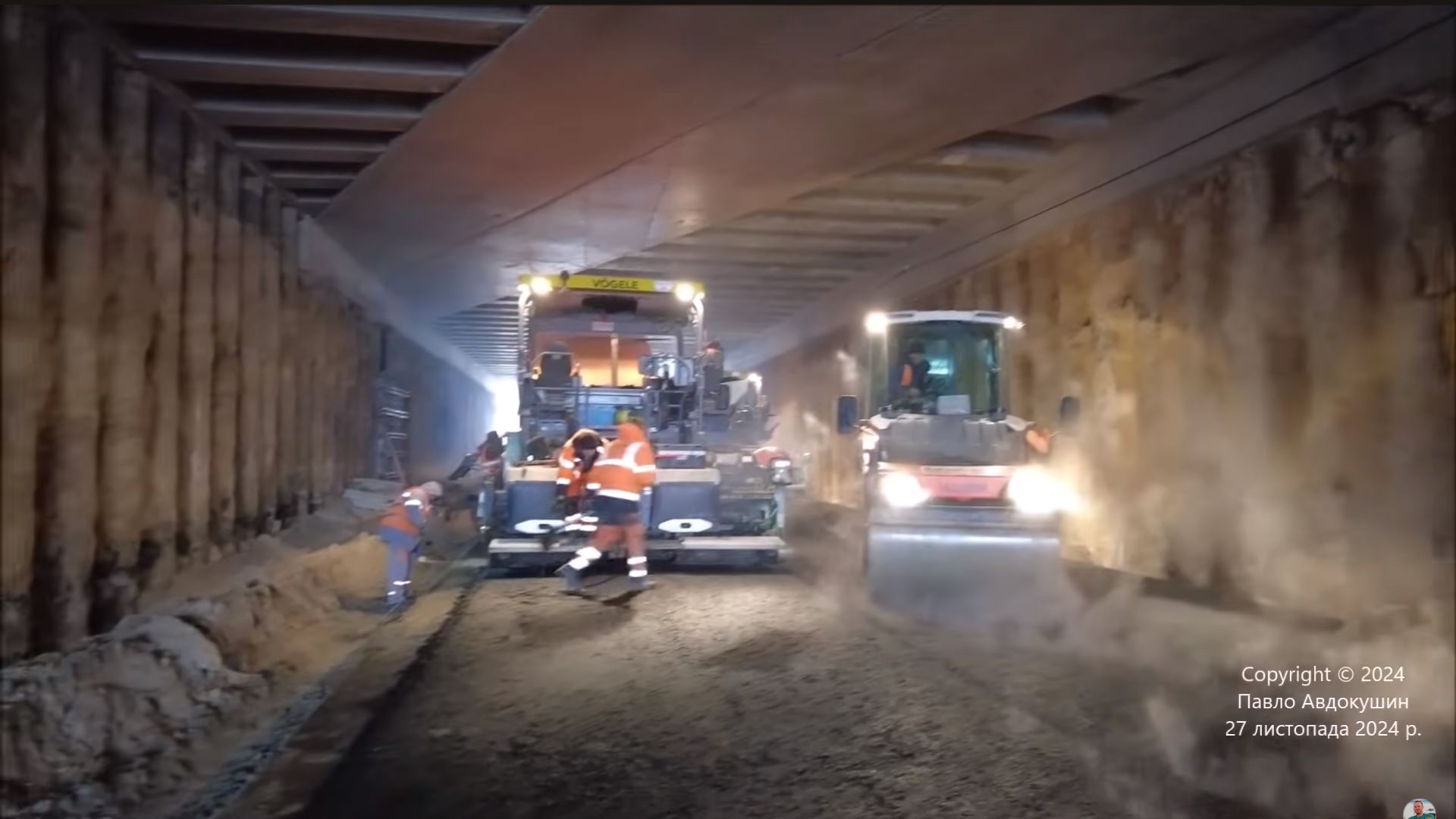 #137. Асфальтування нового автотунелю з Подільського моста на Троєщину/Райдужний (Київ).
