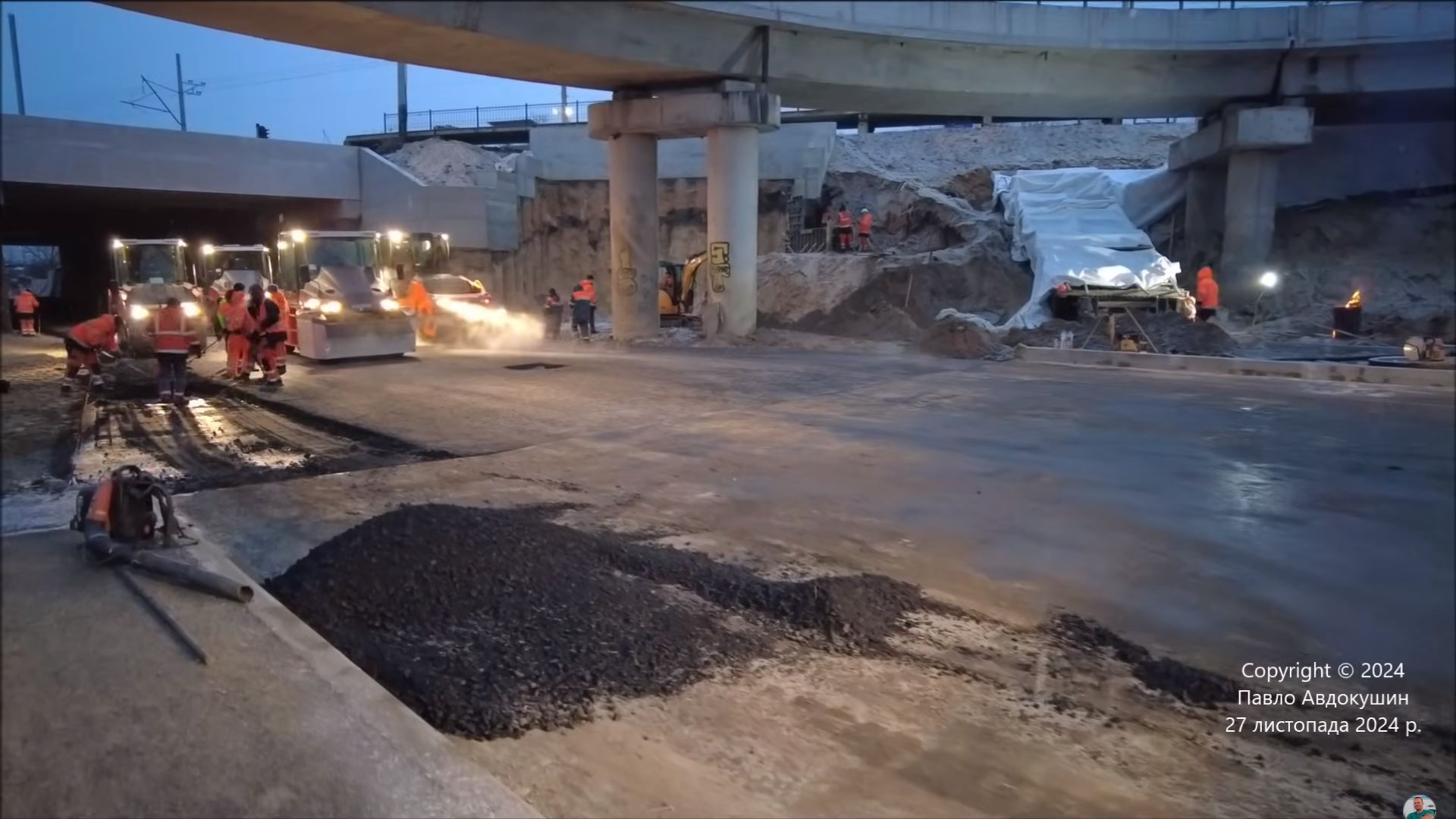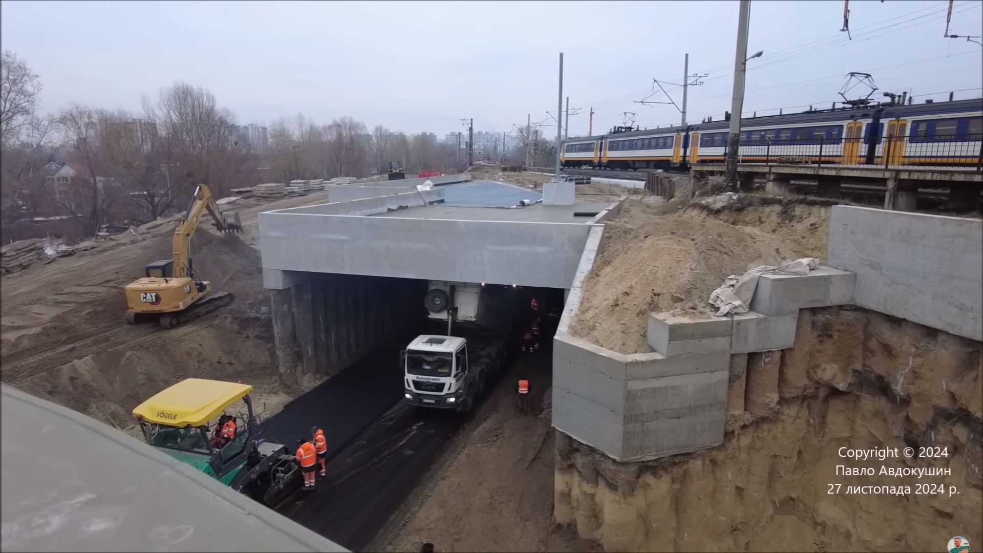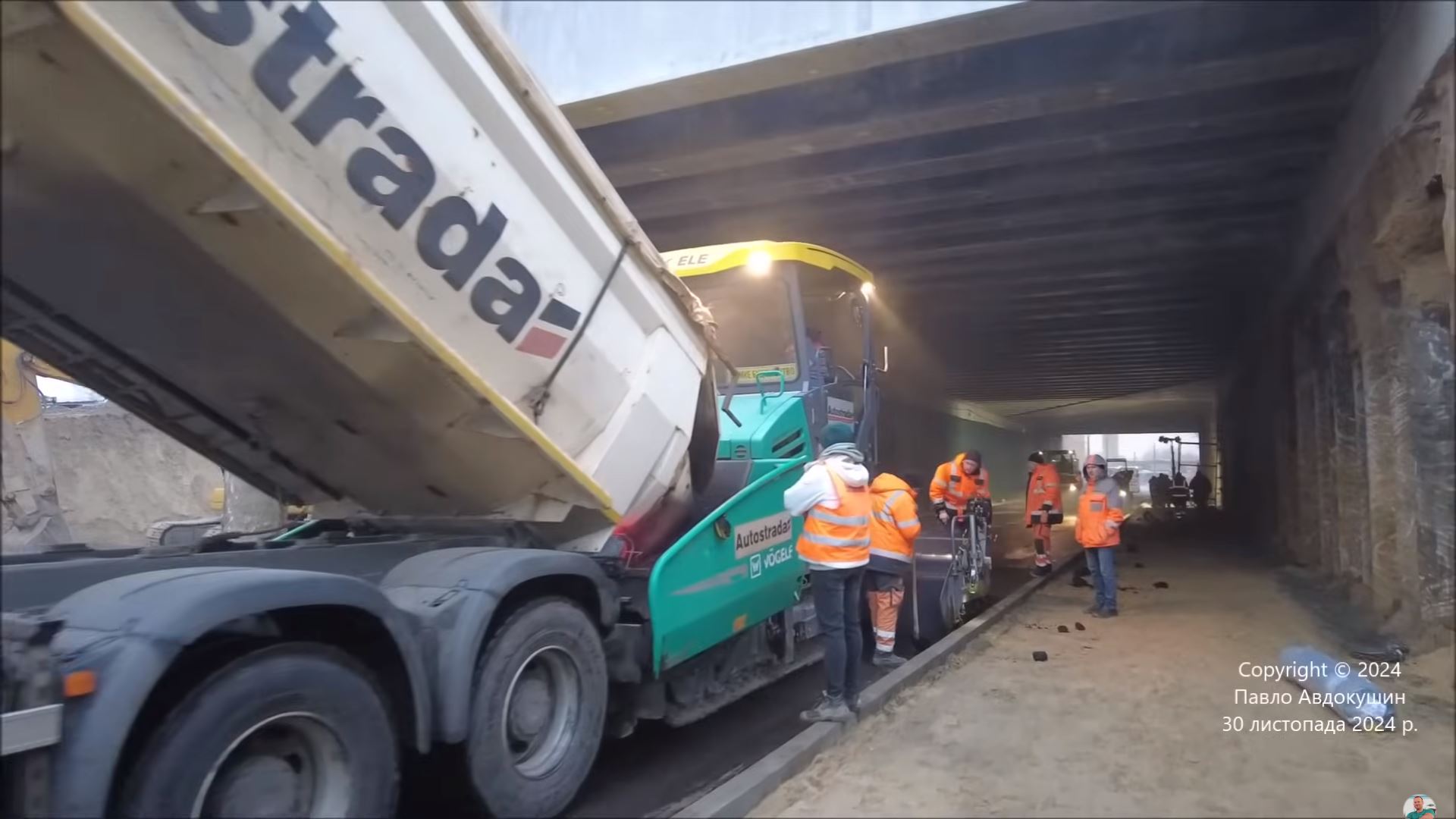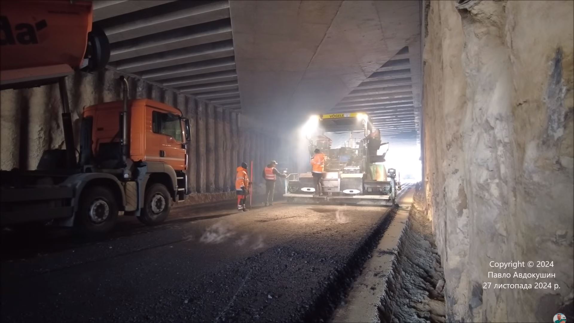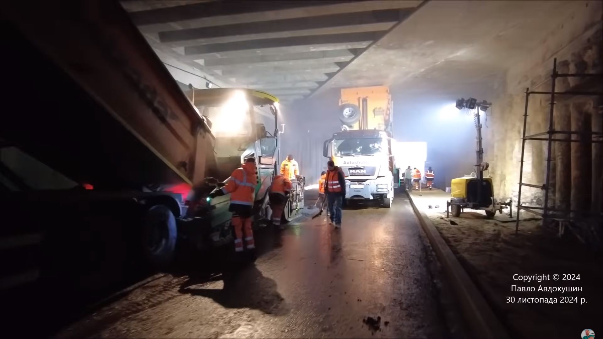 #137. Асфальтування нового автотунелю з Подільського моста на Троєщину/Райдужний (Київ).
